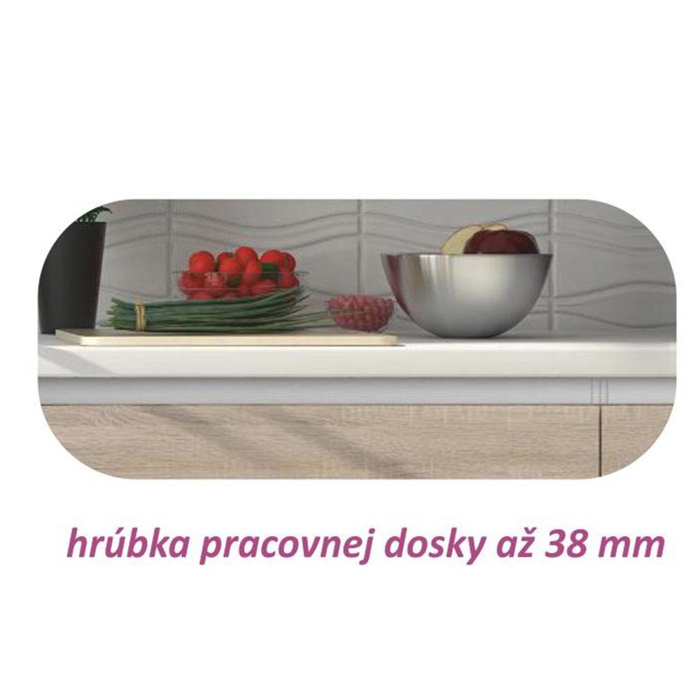 Spodné skrinky sú dodávané s pracovnou doskou (okrem skrinky D80ZL) a dolnou lištou. Možnosť dokúpiť univerzálny drez LAY ON. Možnosť dokúpenia pracovnej dosky naviac 38 mm za 63 Eur/bm.