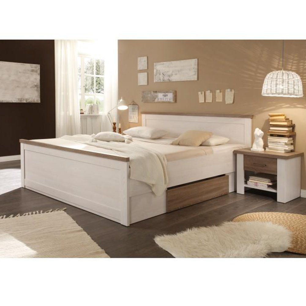 KONDELA Posteľ + 2x nočný stolík, pínia biela/dub sonoma truflový, LUMERA