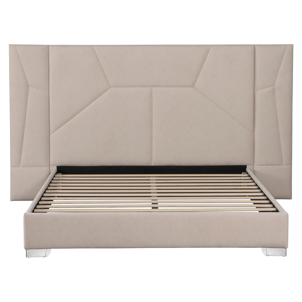 KONDELA Posteľ s roštom a LED osvetlením, 160x200, béžová Velvet látka, ALTESA
