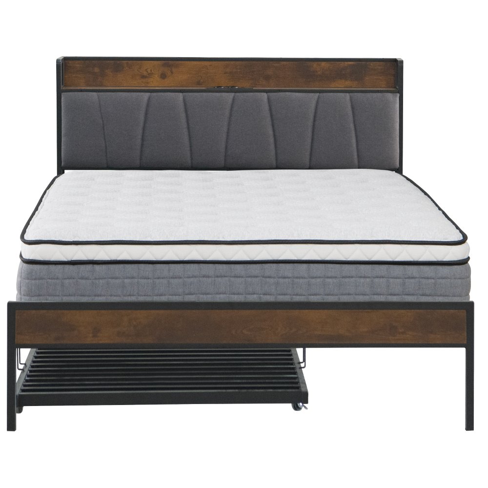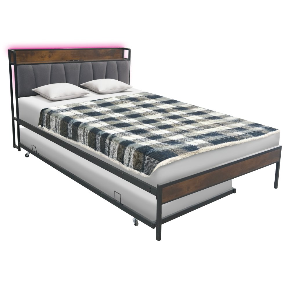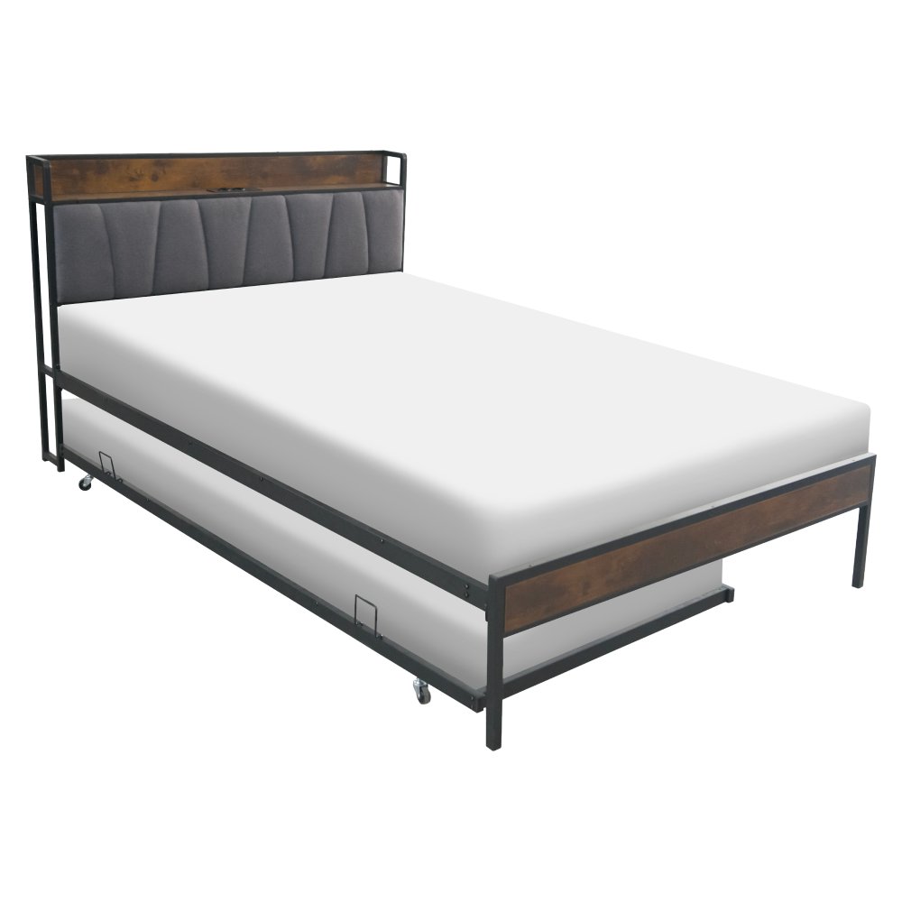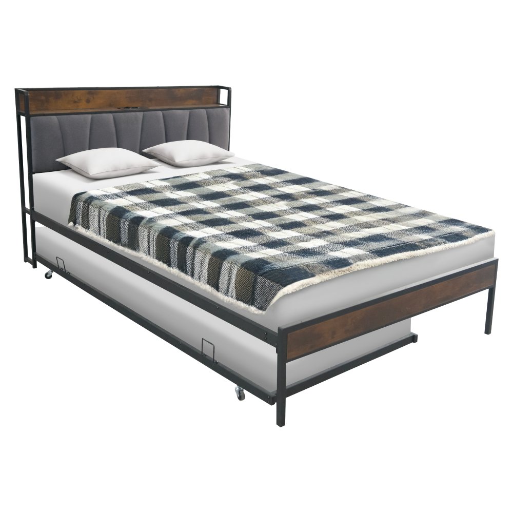 KONDELA Posteľ s roštom a výsuvnou prístelkou, 160x200, čierna/sivá, NORDO