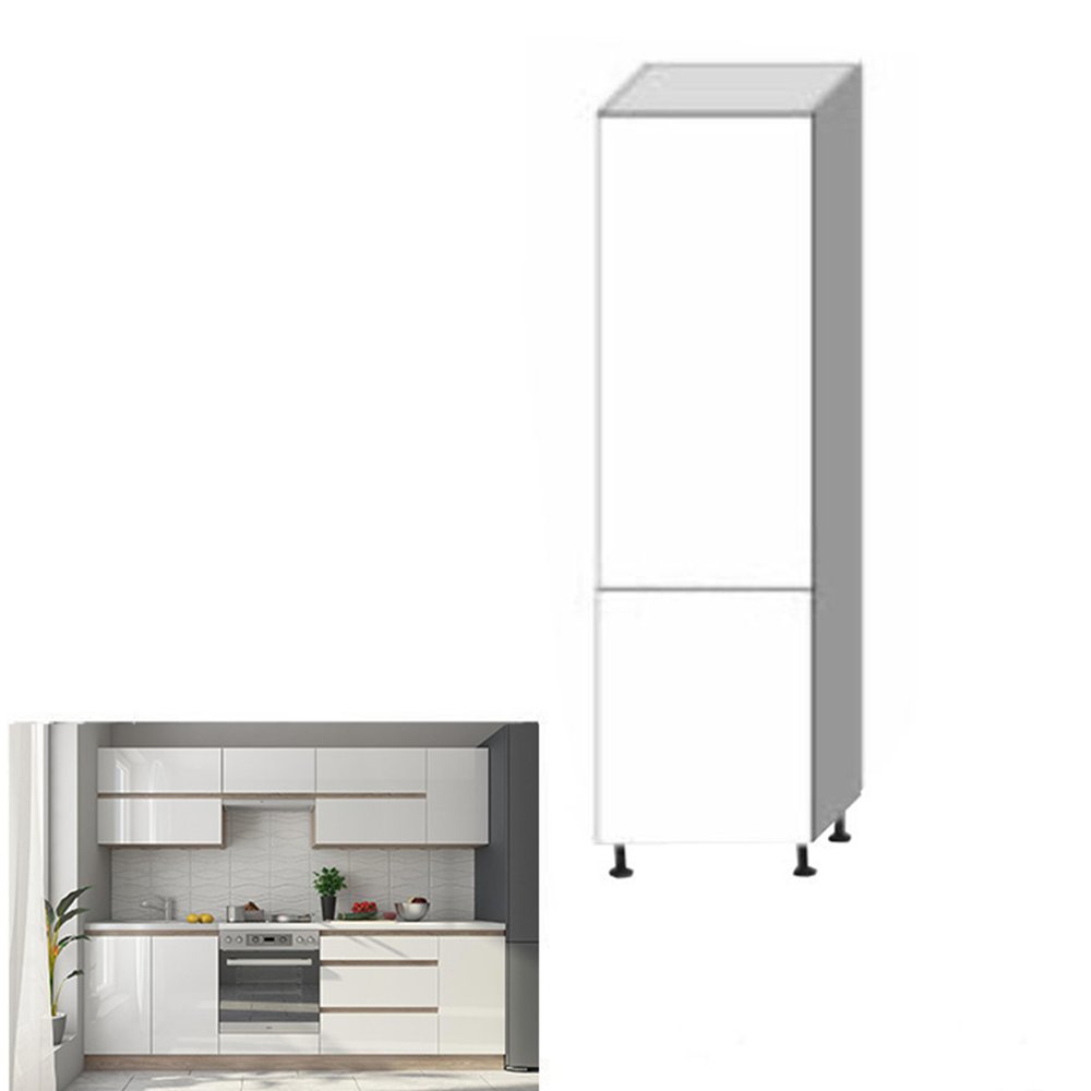 KONDELA Potravinová skrinka D 60, vysoký biely lesk/dub sonoma, pravá, LINE