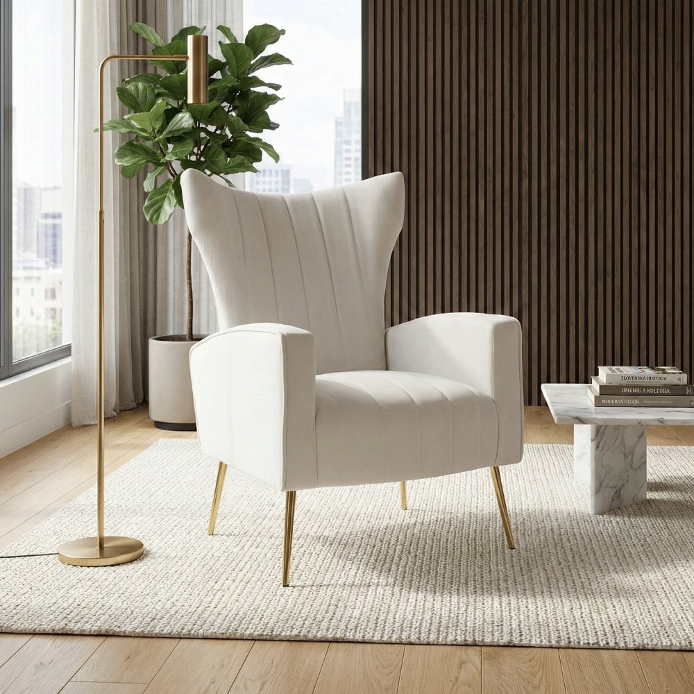 KONDELA Relaxačné kreslo, béžová Velvet látka, BARET