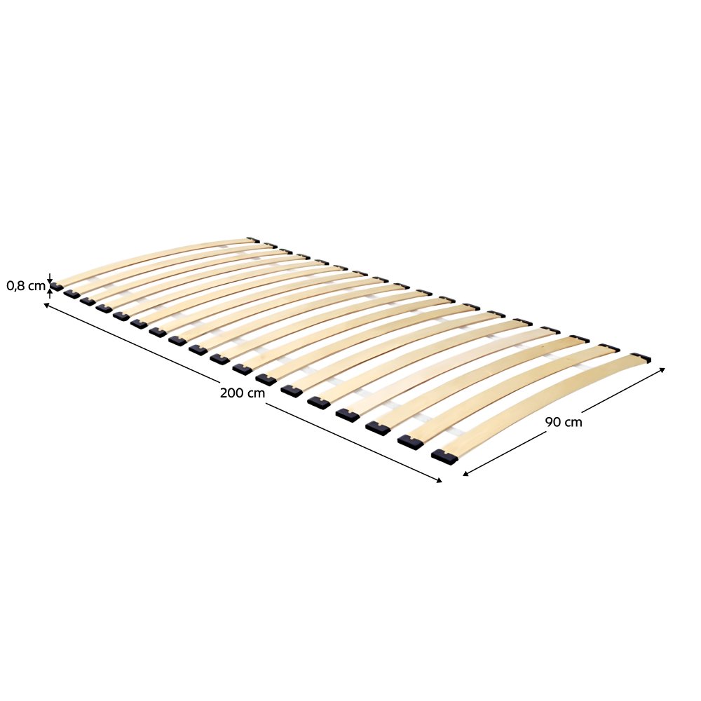 Každý rošt je o 1 cm užší a 5 cm kratší od udaného rozmeru, napr. 90x200 = 89x195 cm.