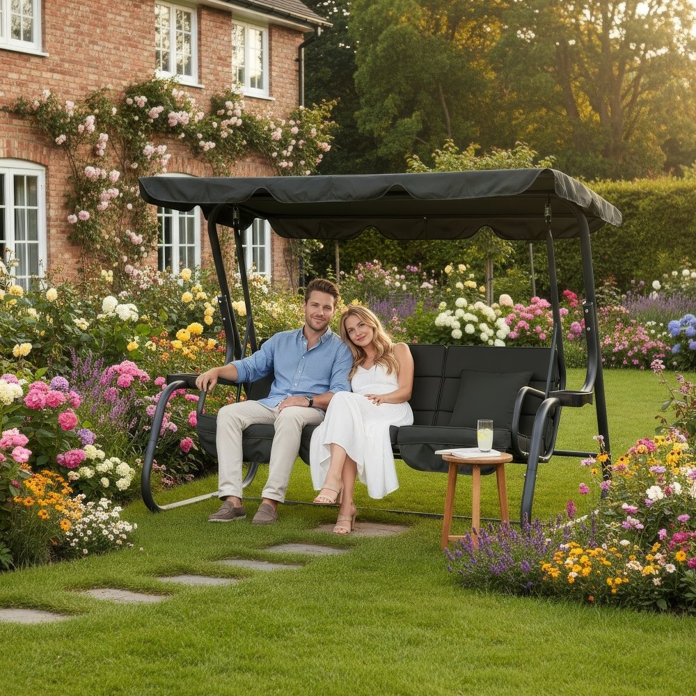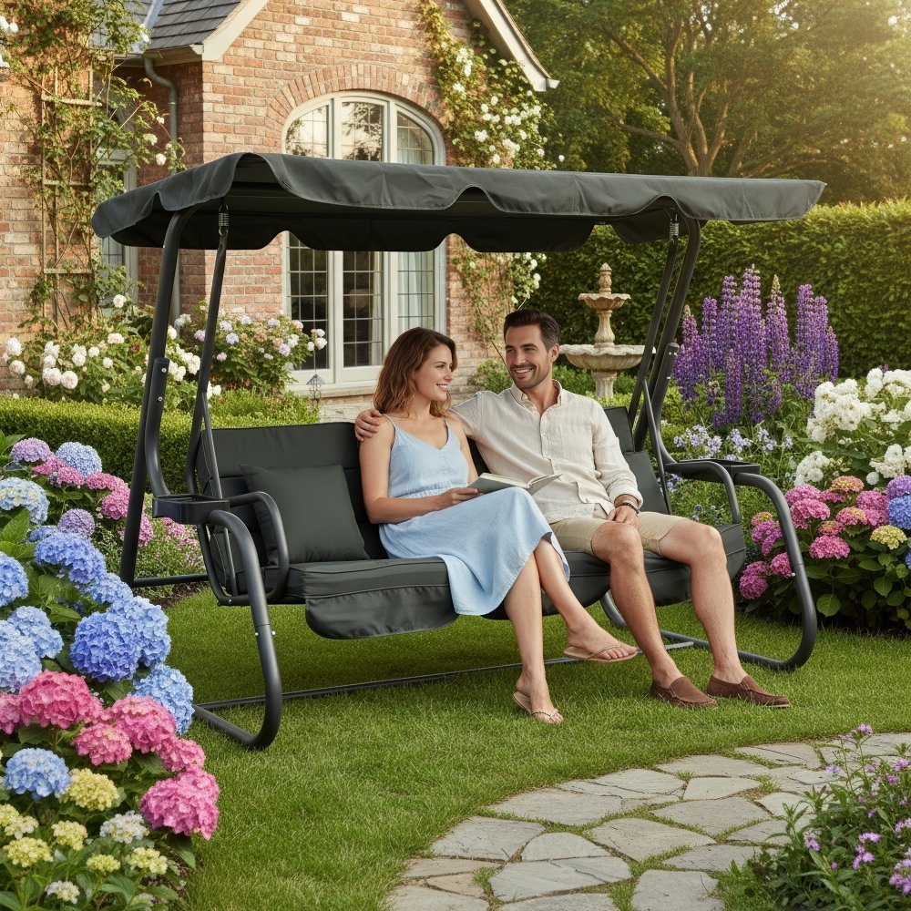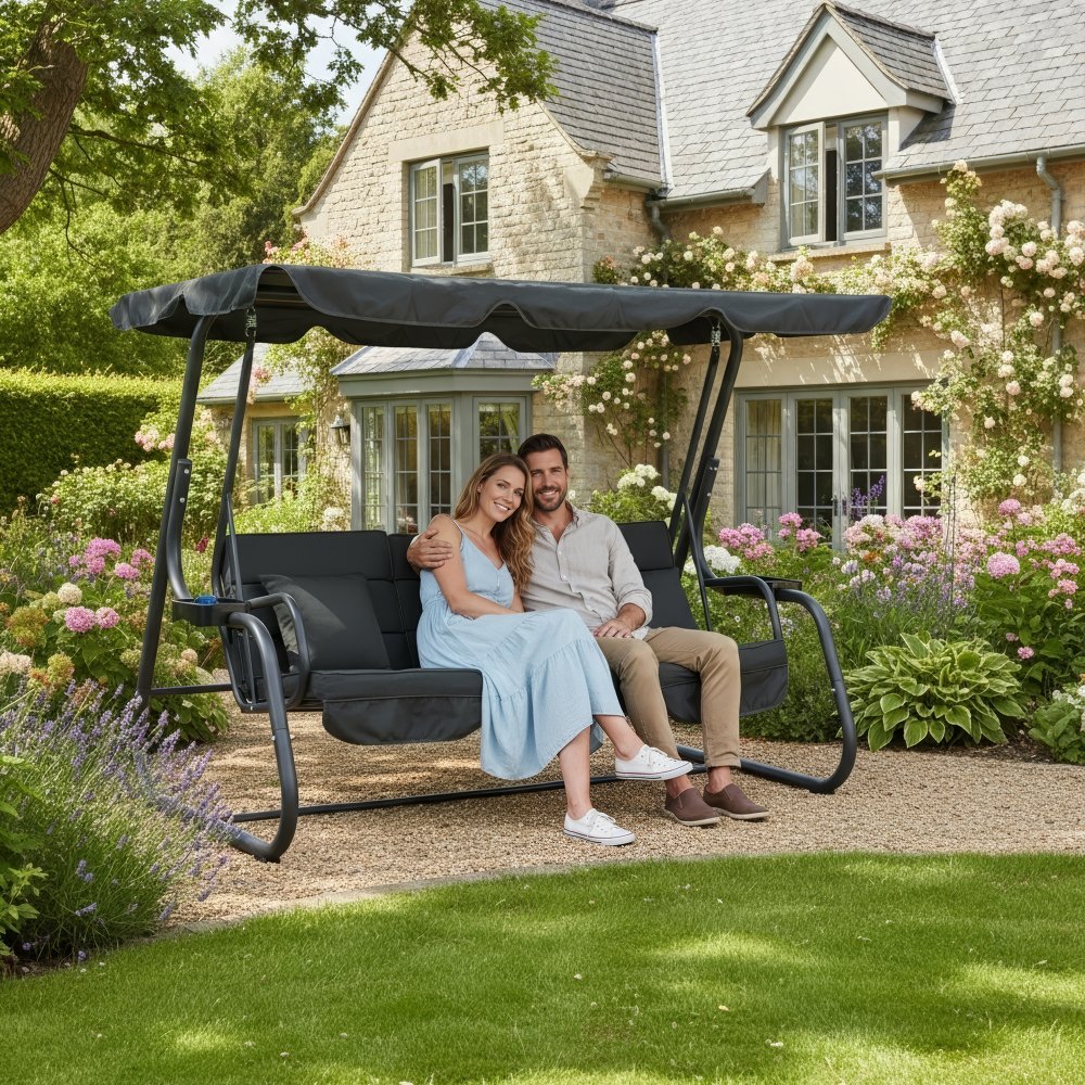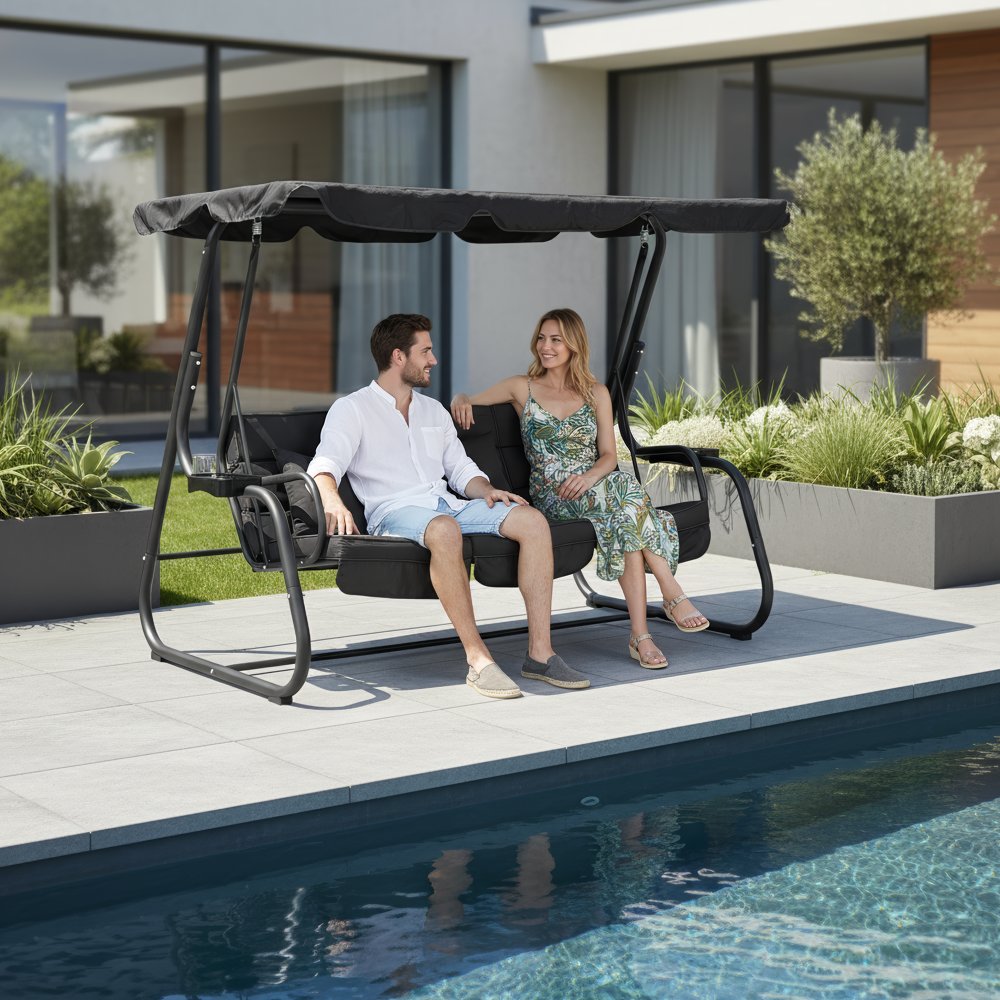 KONDELA Záhradná hojdačka, tmavosivá, MIJA