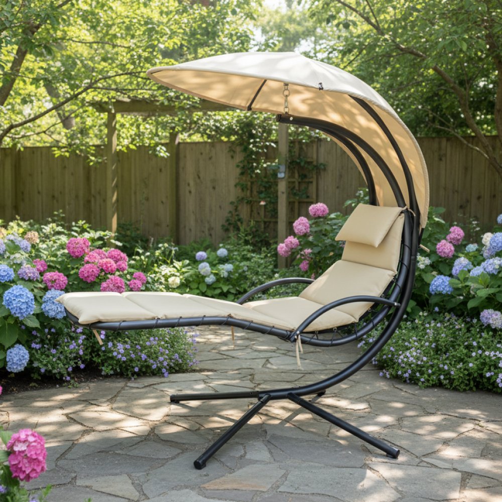 KONDELA Záhradné hojdacie kreslo, béžová/čierna, SPAVIN 2 NEW