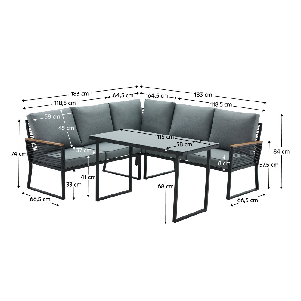 Rozmery roh (ŠxHxV): 64,5x64,5x74/84 cm