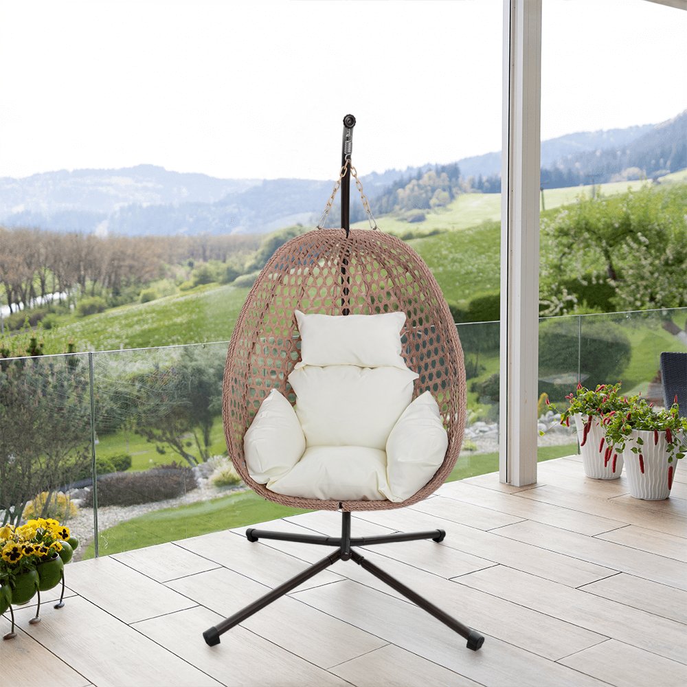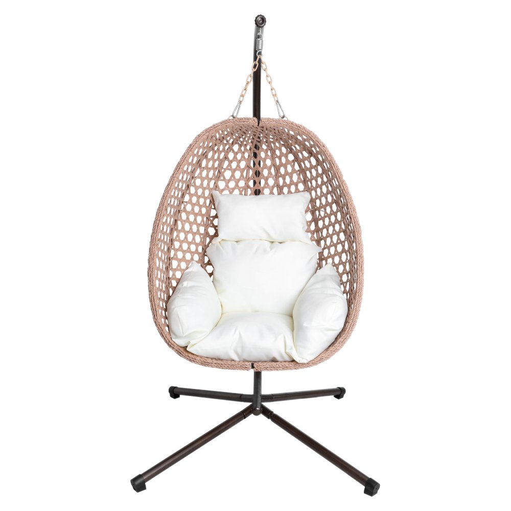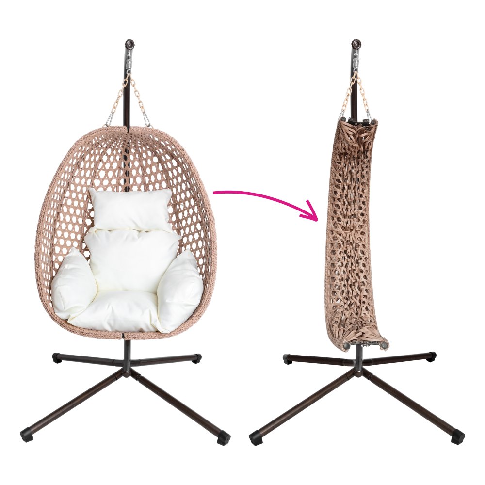KONDELA Závesné kreslo, skladacie, medená/béžová/krémová, SANAN