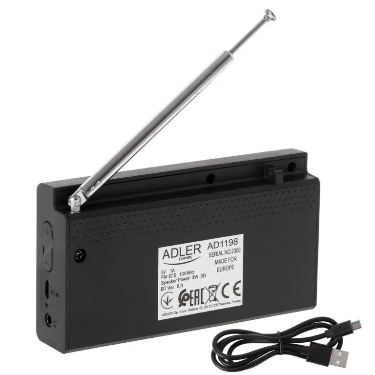 Prenosné rádio, Prepínač s plynulou reguláciou hlasitosti, Rádiové frekvencie: FM: 88 - 108 MHz, AM: 530 - 1