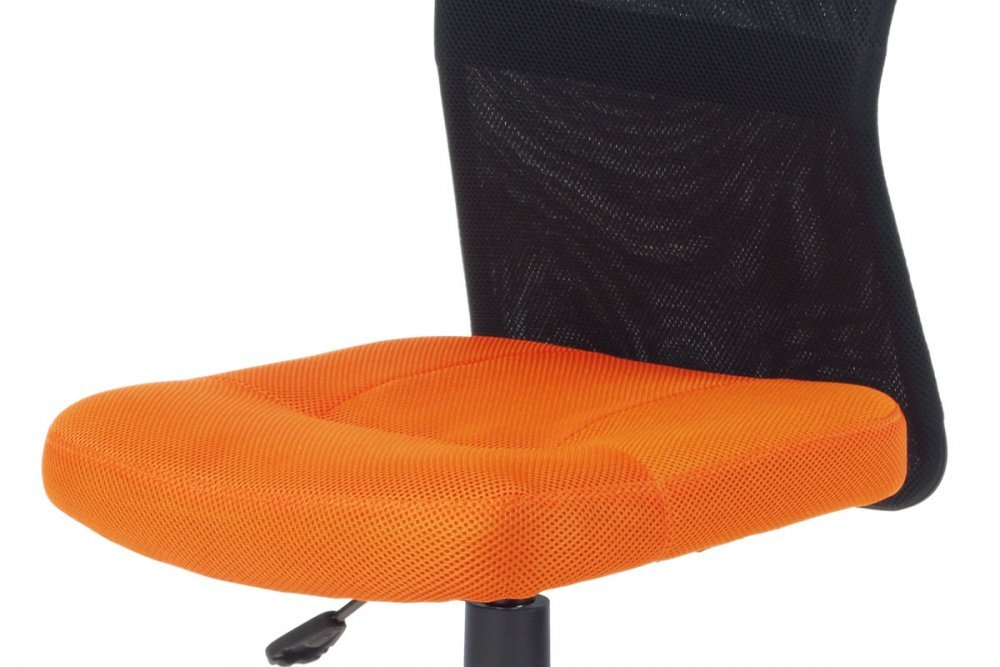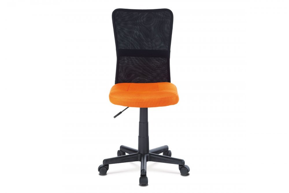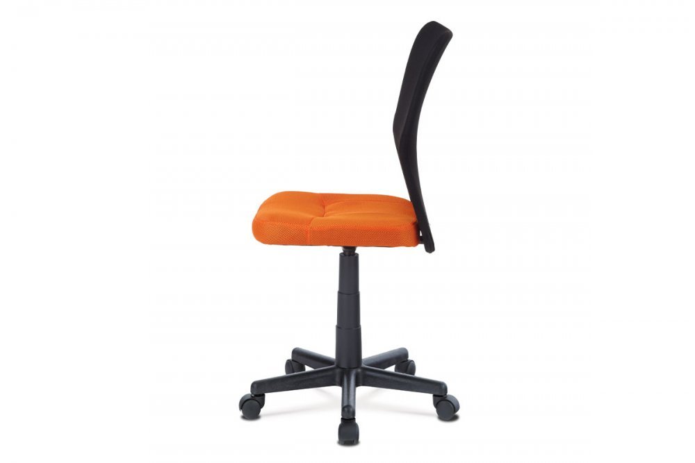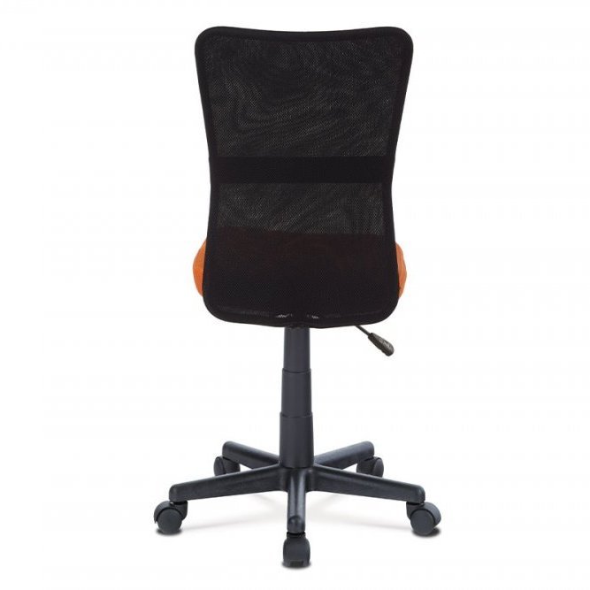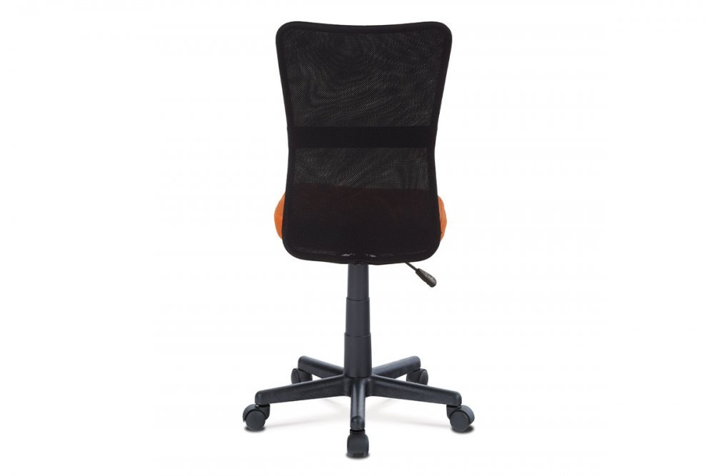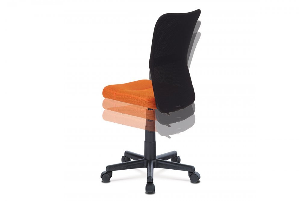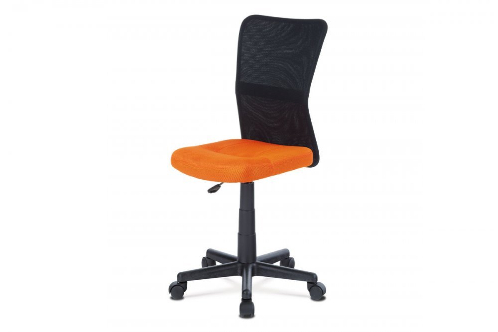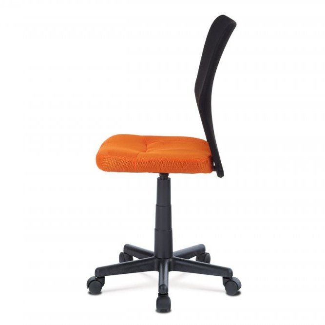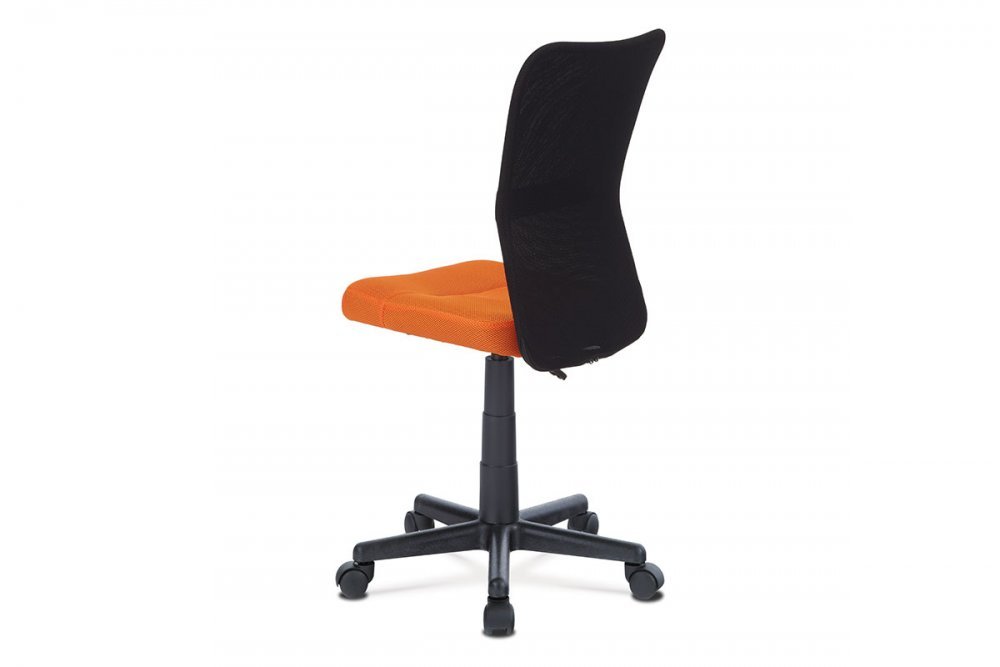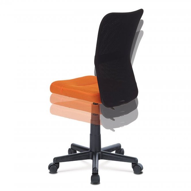 Detská kancelárska stolička čalúnená látkou MESH v štýlovej kombinácii oranžovej a čiernej farby. Vďaka plynovému piestu je stolička výškovo nastaviteľná. Stolička má tiež plastový kríž s plastovými kolieskami vhodnými na koberce. Nosnosť 60 kg. Rozmery:42x43x86-98x42-54