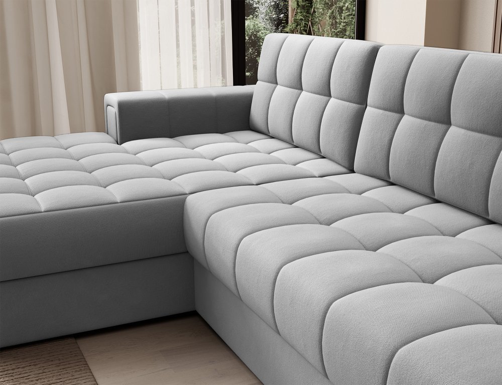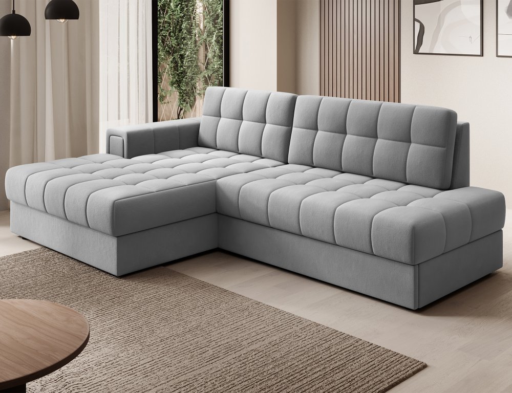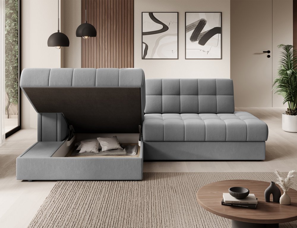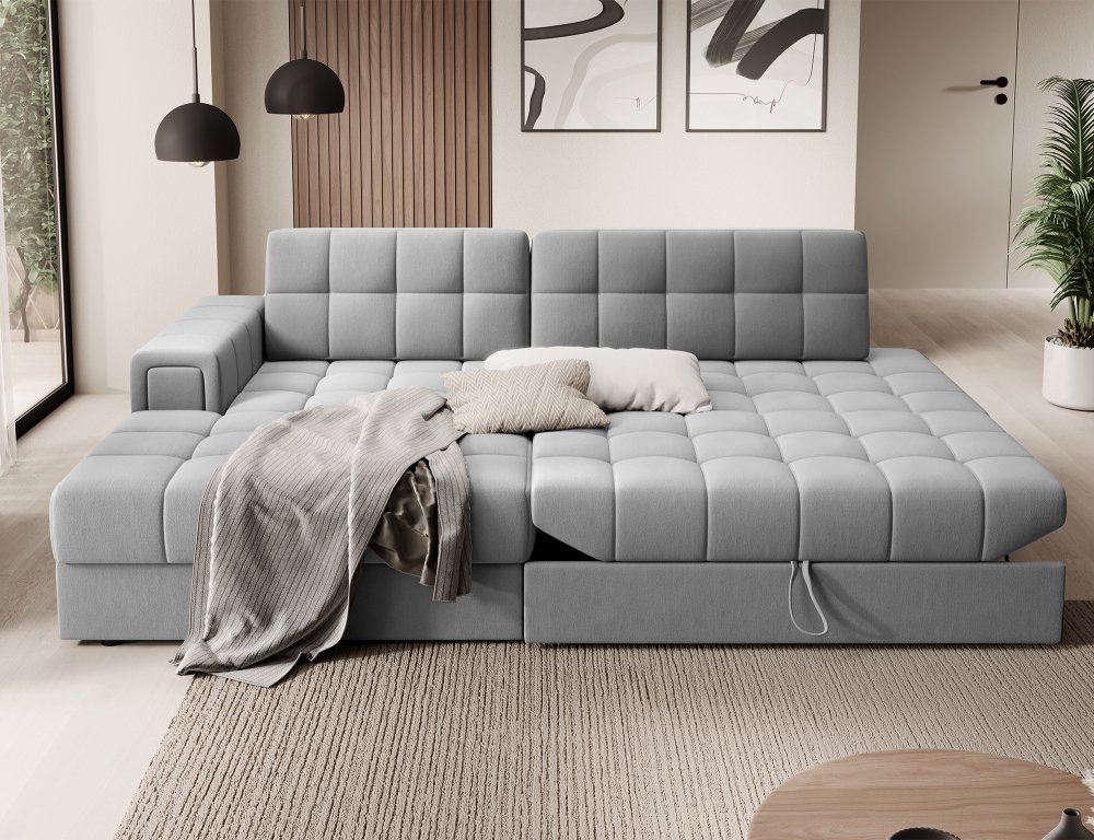 Rohová sedačka Blezalt je dokonalou kombináciou moderného dizajnu, funkčnosti a pohodlia. Jej rozmery 240x150x82 cm poskytujú dostatok priestoru na každodenný oddych a vďaka funkcii rozkladu na spanie a úložnému priestoru na posteľnú bielizeň je ideálnou voľbou do každého interiéru. Sedadlo z polyuretánovej peny T2540 a vlnovej pružiny typu B zaručuje pohodlie a odolnosť voči deformáciám, zatiaľ čo penová výplň v operadle sa prispôsobí telu a poskytuje optimálnu oporu. Vďaka rozkladaciemu mechanizmu Delfin sa sedačka v priebehu niekoľkých sekúnd premení na pohodlnú posteľ a úložný priestor umožňuje uskladniť ďalší textil. Čalúnená zadná strana zabezpečuje elegantný vzhľad zo všetkých strán a čierne plastové nožičky dodávajú stabilitu a ľahkosť. Ideálna do obývačky, dennej izby a moderných interiérov, ponúka pohodlie a štýl na dlhé roky.