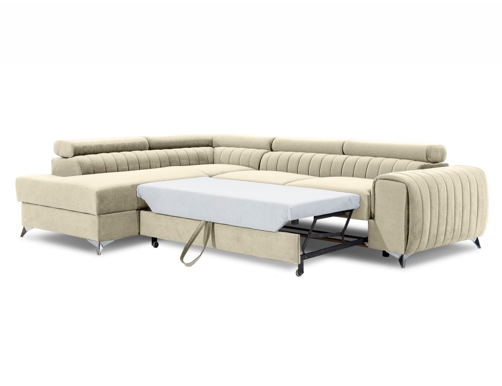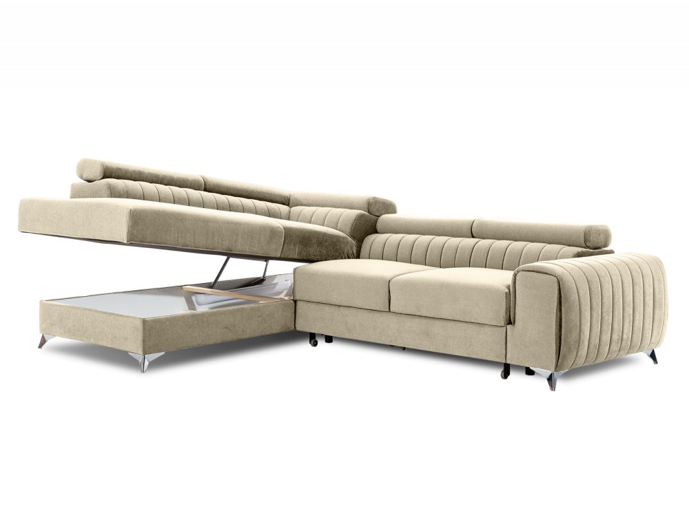 Laurence je štýlový, funkčný a predovšetkým elegantný rohový nábytok pre náročných milovníkov pohodlia. Vysoký komfort oddychu umocňujú nastaviteľné, vysoké opierky hlavy a široké sedadlo. Nábytok s rozmermi 278 x 205 x 92 cm je vyrobený zo vlnitej pružiny typu B, peny T30 a HR, ktoré zabezpečia najvyšší komfort počas denného používania pohovky, ako aj postele po zotmení, pretože vďaka funkciám typu delfín sa rohový nábytok Laurence hodí aj na nočný odpočinok. Rohová sedacia súprava v tvare písmena L je vybavená funkciou spánku s rozmermi 123 x 193 cm. Okrem toho má tiež veľký úložný priestor na posteľné prádlo. Vďaka elegantným prešitiam a oceľovým nohám s výškou 9 cm je rohový nábytok udržiavaný v Modernýom štýle. Produkt je k dispozícii vo všetkých látkach z kolekcie Eltap. Ak hľadáte osvieženie a Modernýistické vyhotovenie, Laurence bude pre vás určite ideálny.