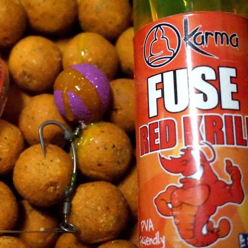 Radu FUSE aktivátorov nájdeme vo všetkých 8 chuťovo kompatibilných verziách s ostatným produktovým radom našich výrobkov/nástrah Karma Bait. Vďaka svojej fluorescenčnej farbe a neoddeliteľné vlastnosti sa radí medzi vysoko atraktívne produkty. Okrem špeciálnych prísad a zmesí, FUSE obsahuje všetky požadované zložky, akým sú aminokyseliny, vitamíny, mineráli a sladidlo NHDC. Sfarbenie vo vode sa odlišuje na základe príchute, pričom niektoré z nich produkujú žlto-zelený fluo, alebo červenkastý flou oblak. Balenie obsahuje 115 ml tekutého dipu vo flakóne s uzavierateľným vrchnákom.
