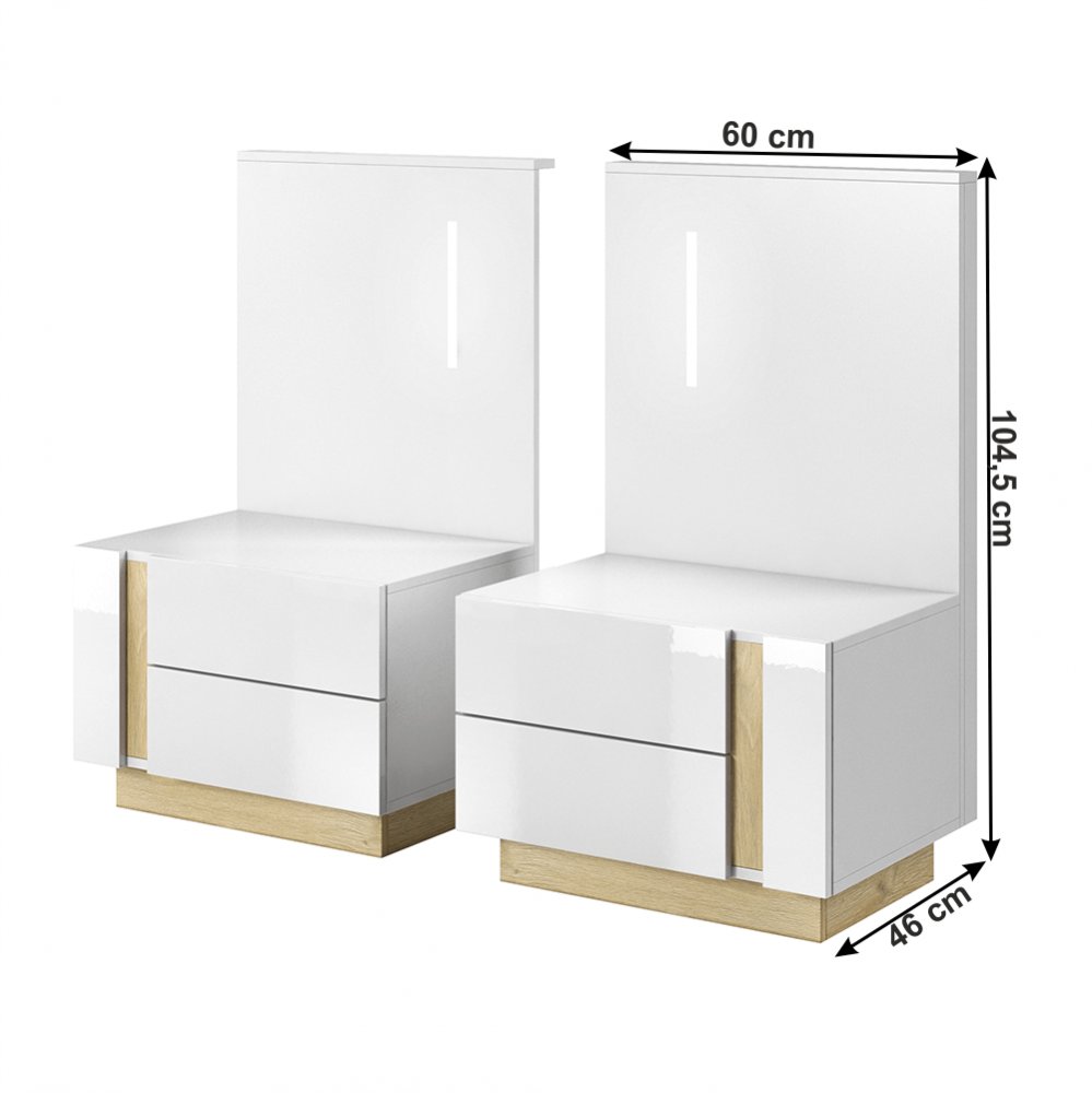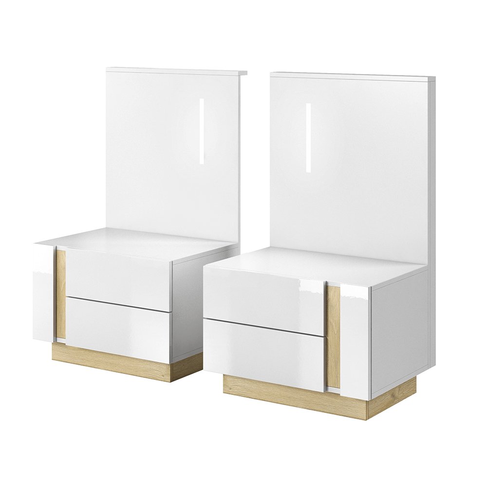 KONDELA 2 nočné stolíky, biela/dub grandson/biely lesk, CITY