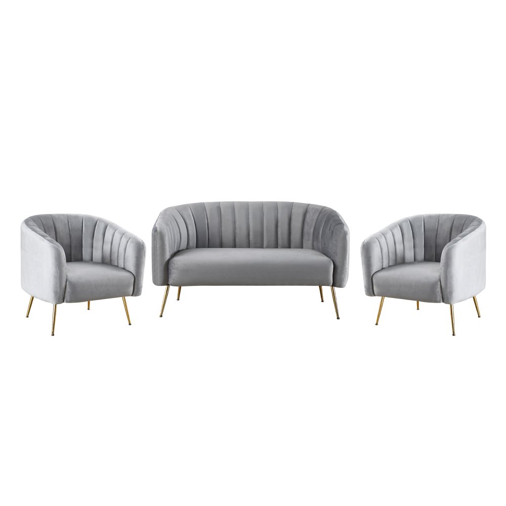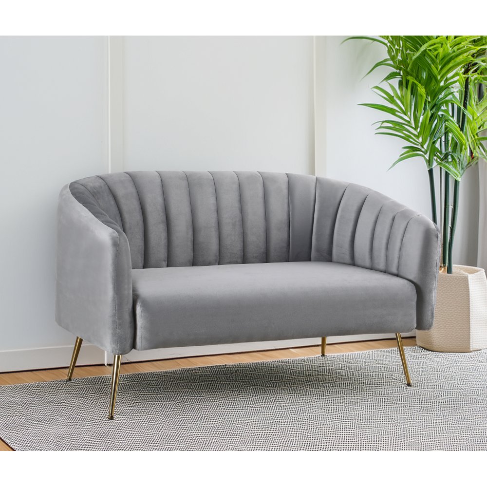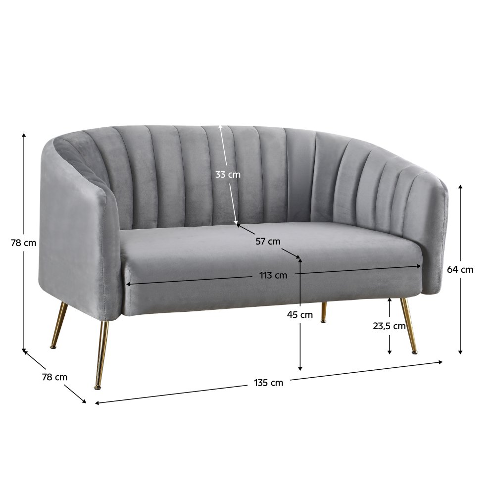 KONDELA Dizajnový 2-sed, sivá Velvet látka/gold chróm-zlatý, BAGY
