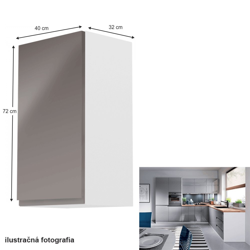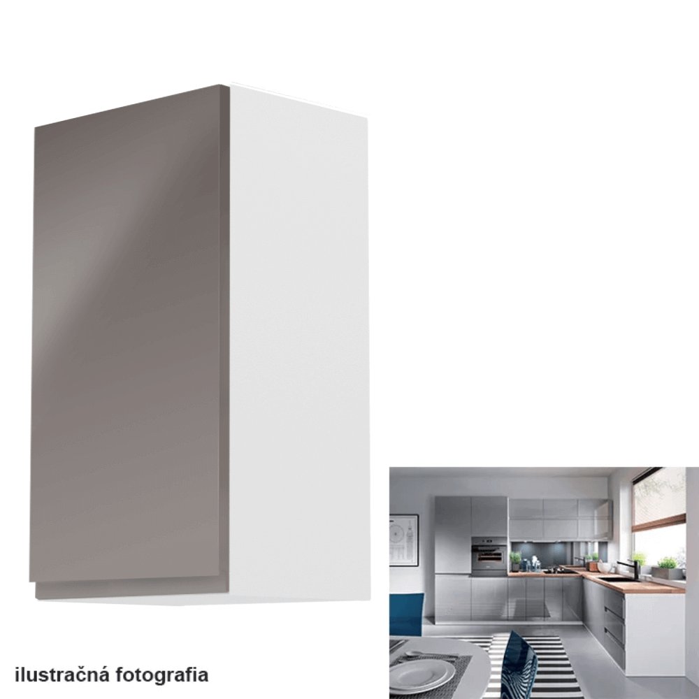 KONDELA Horná skrinka, biela/sivý extra vysoký lesk, ľavá, AURORA G40