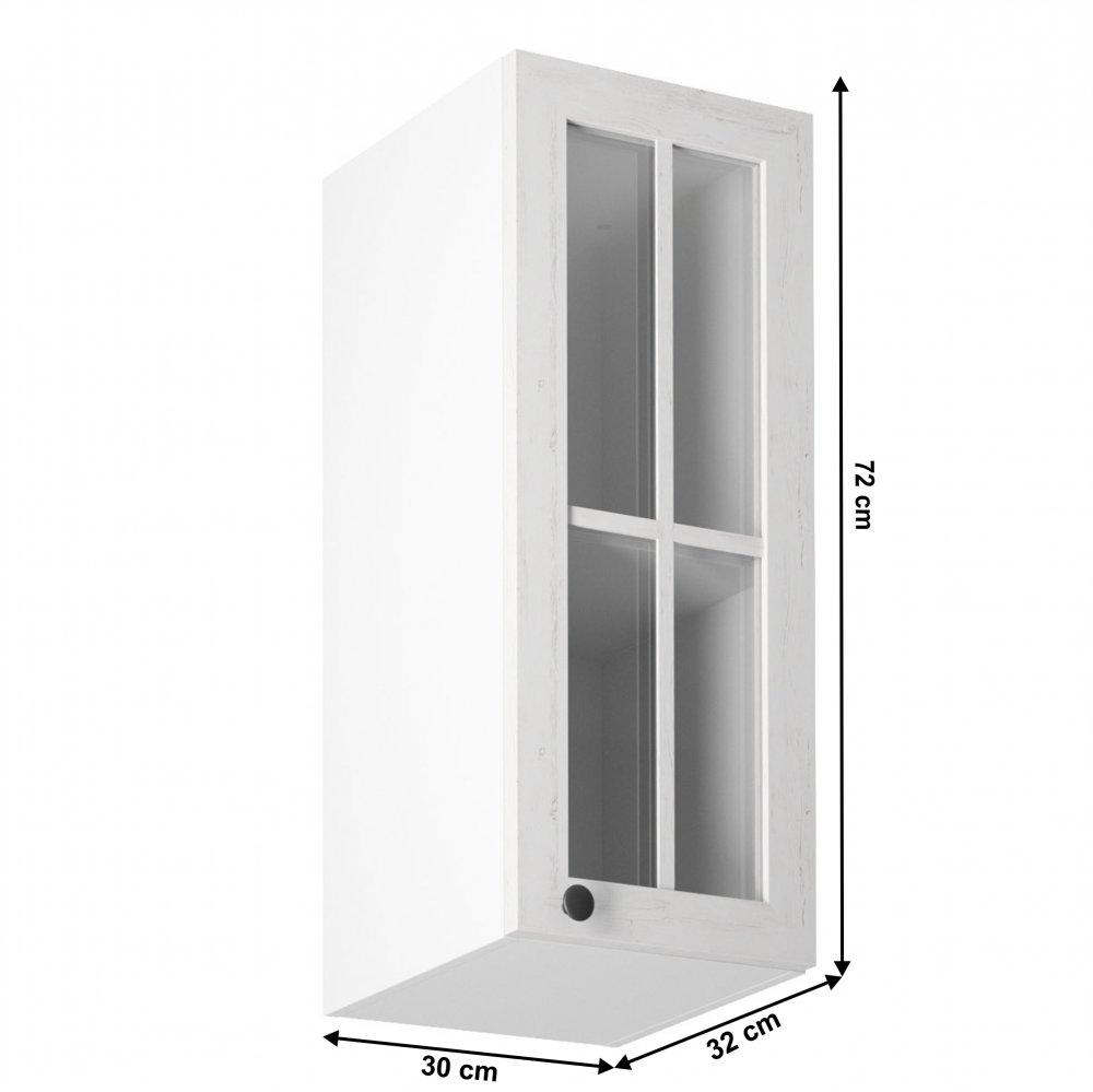 KONDELA Horná skrinka so sklom G30S, pravá, biela/sosna andersen, PROVANCE
