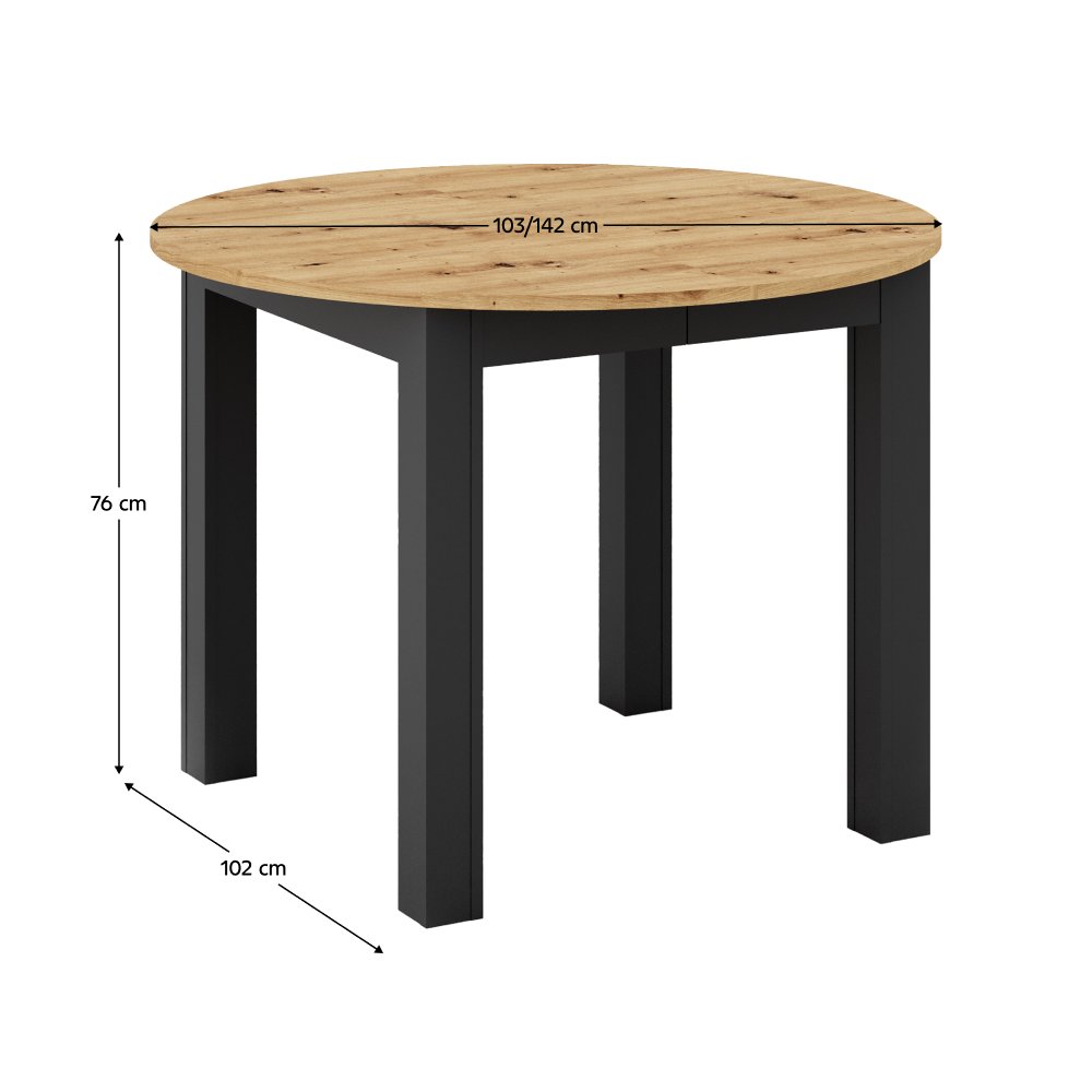 KONDELA Jedálenský rozkladací stôl, dub artisan/čierna, 103-142x76 cm, HARRY