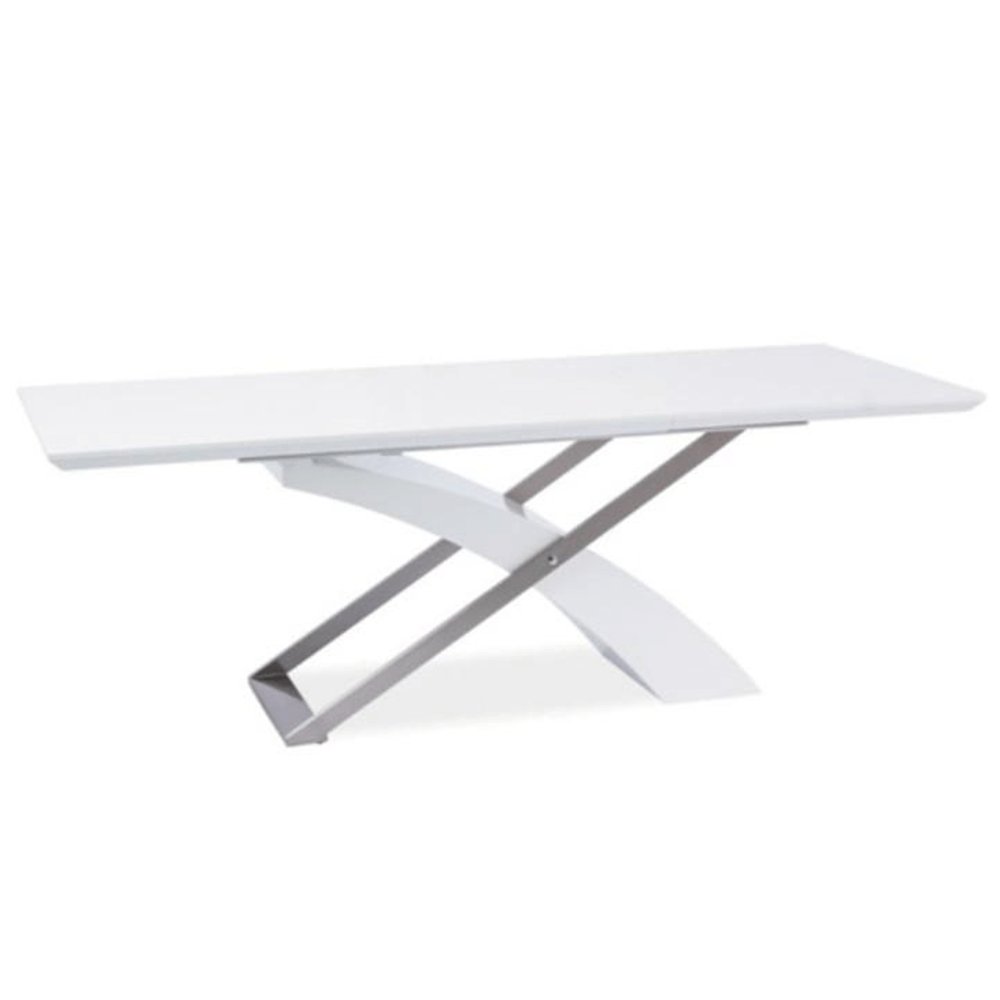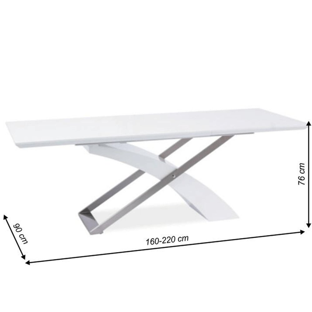 KONDELA Jedálenský stôl, biela/biela extra vysoký lesk HG, 160-220x90 cm, KROS