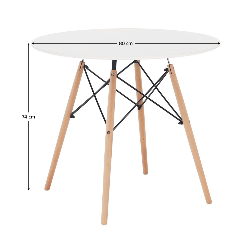 Jedálenský stôl, materiál: MDF, drevo, kovové nohy, farebné prevedenie: biela/nohy buk nohy, priemer x V: 80x74 cm.