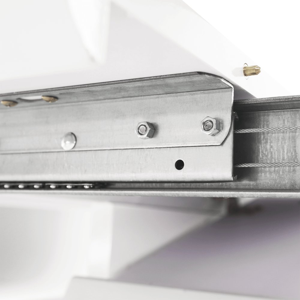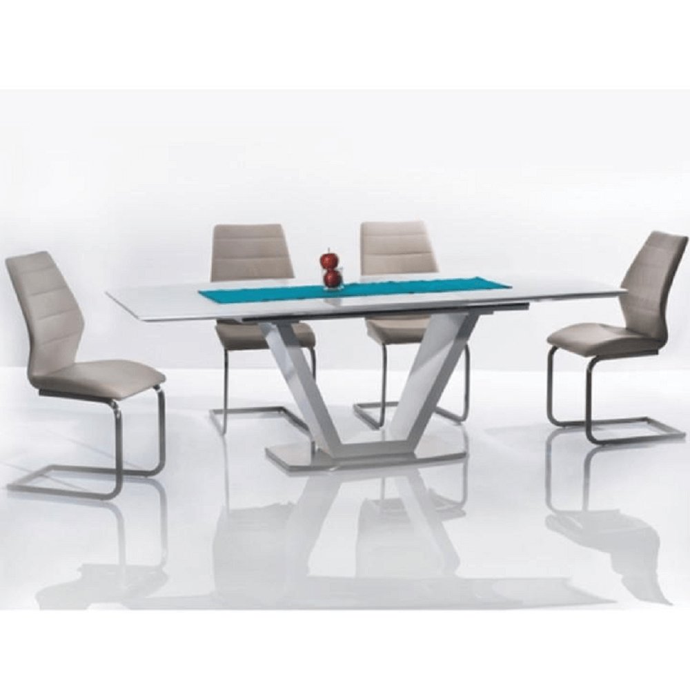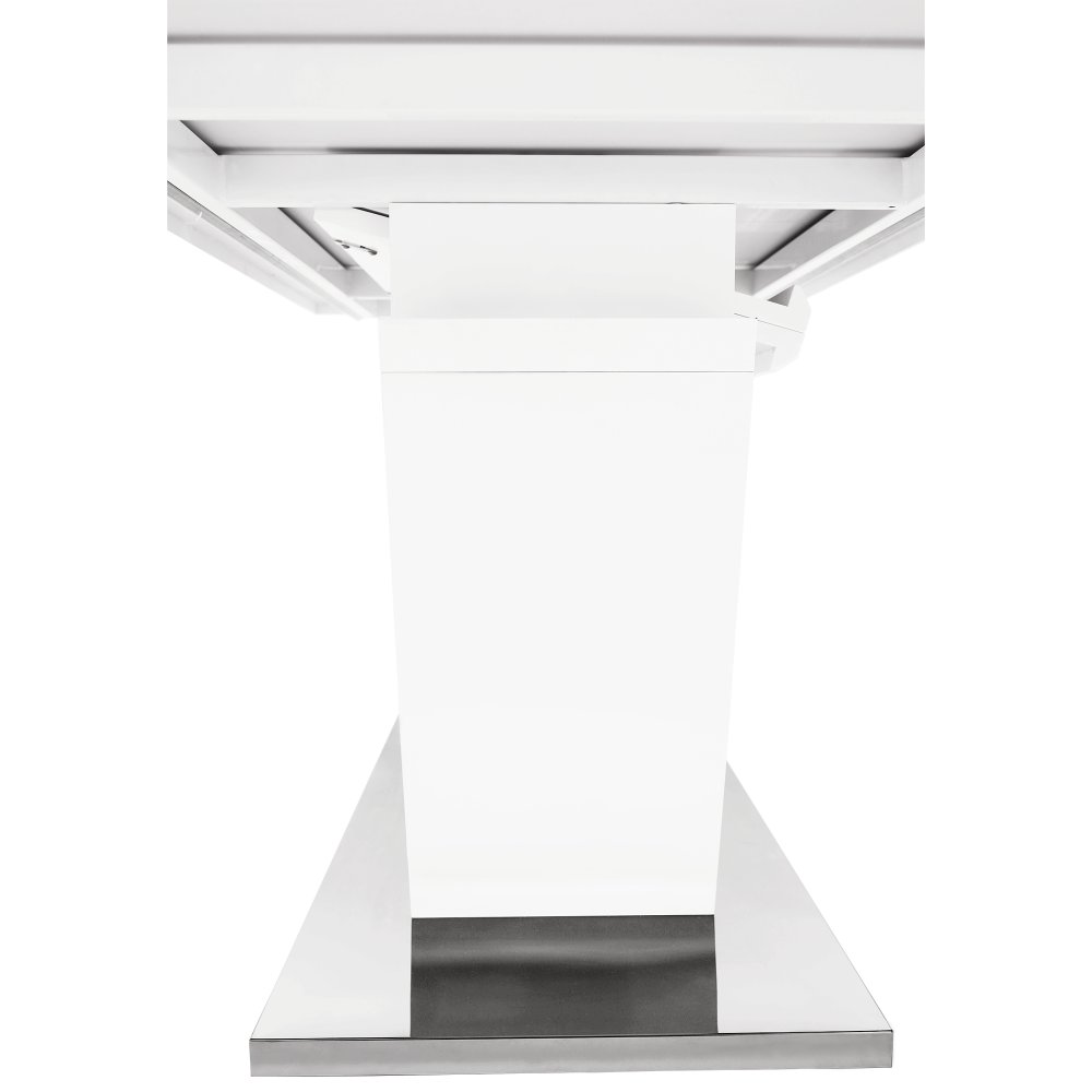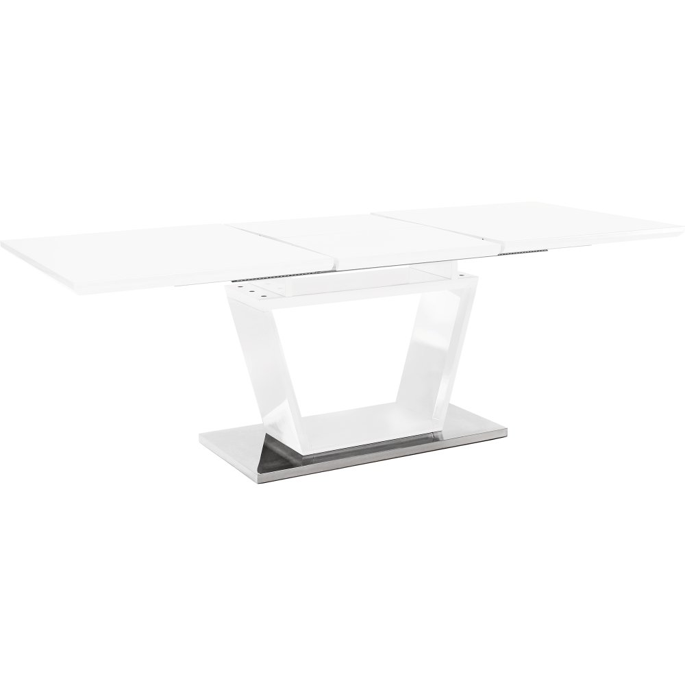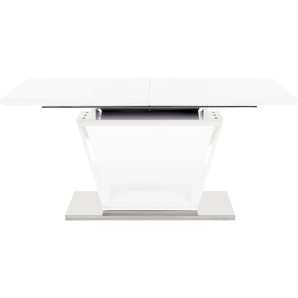 luxusný a dizajnový rozkladací jedálenský stôl, farebné prevedenie: biela s extra vysokým leskom HG, materiál: MDF+oceľ, ŠxHxV: 160-220x90x76 cm.