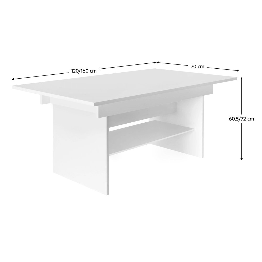 KONDELA Jedálenský/konferenčný rozkladací stôl, biela, 120/160x70 cm, LAVKO NEW