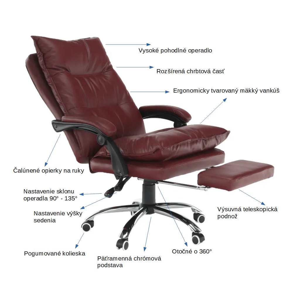 Kancelárske kreslo DRAKE s polohovacou opierkou chrbta a výsuvnou podnožou. Materiál: ekokoža/kov