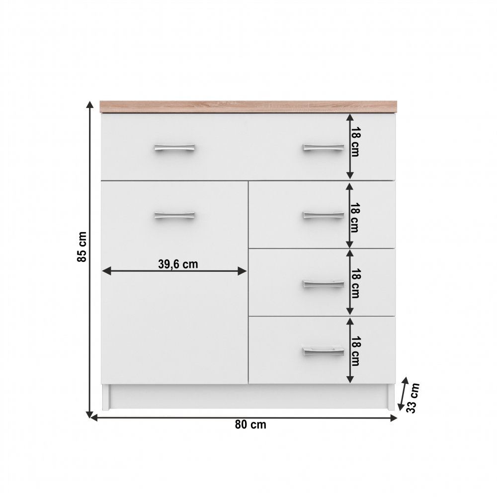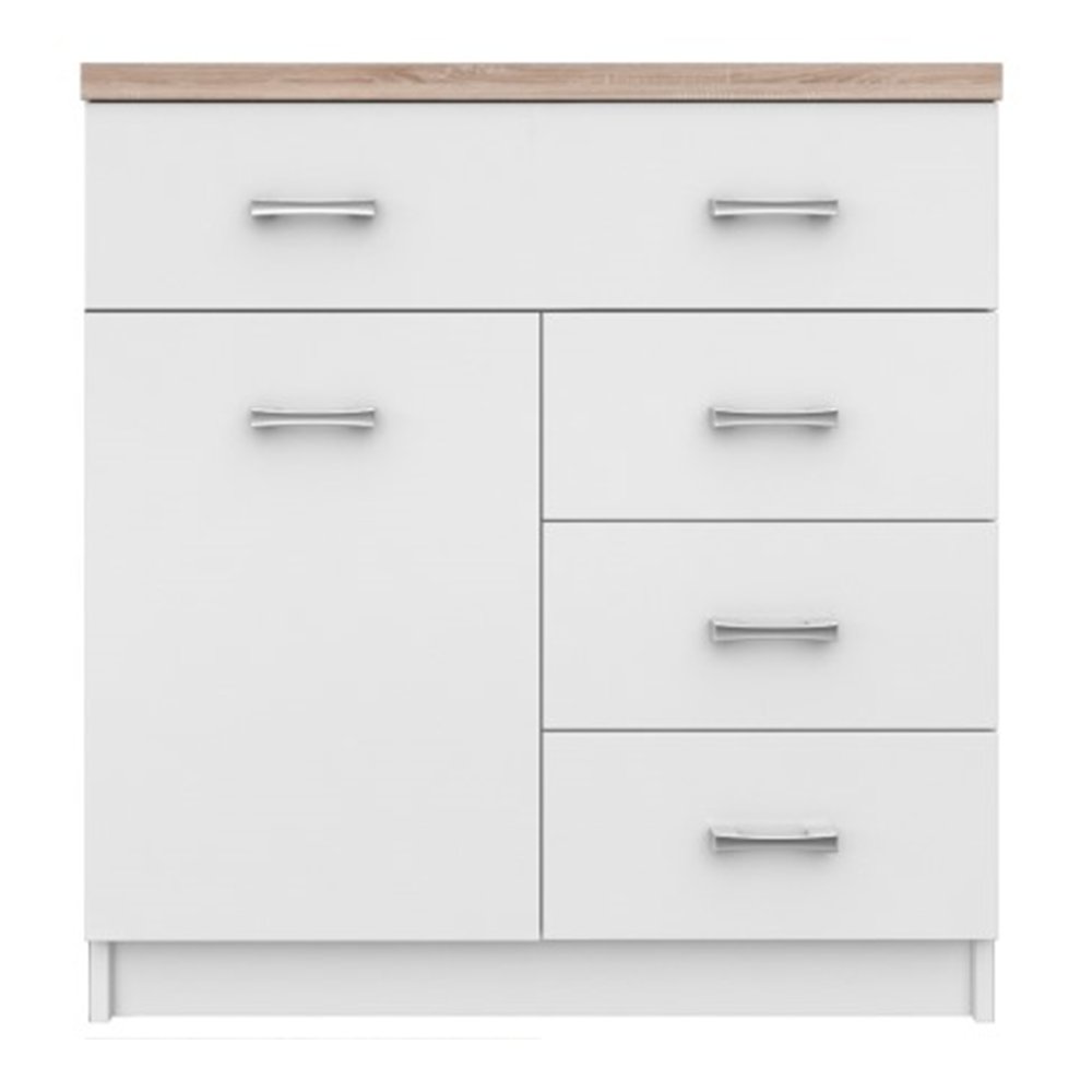 KONDELA Komoda 1D4S, biela/dub sonoma, TOPTY TYP 12