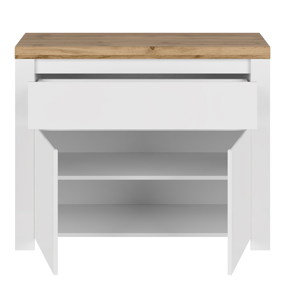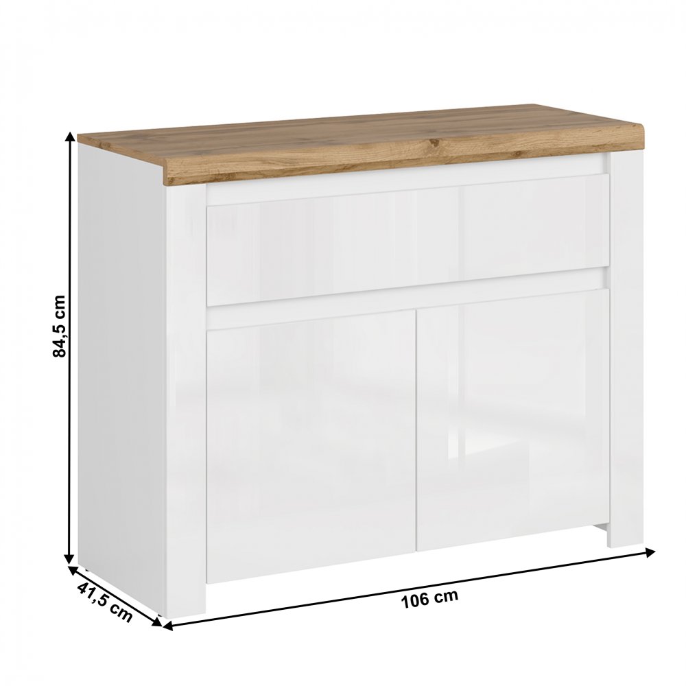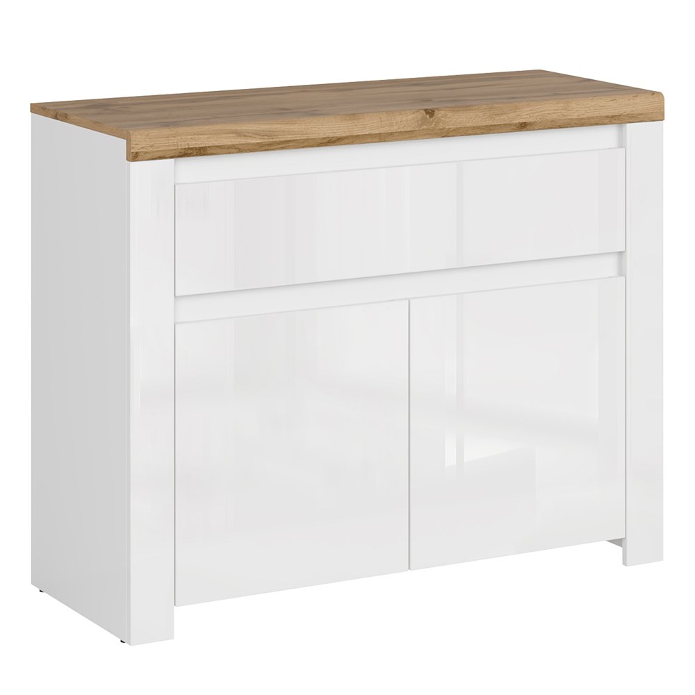 KONDELA Komoda 2D1S, biely lesk/dub wotan, VILGO