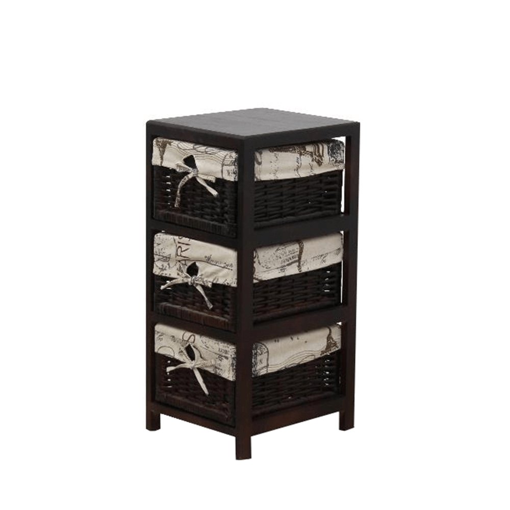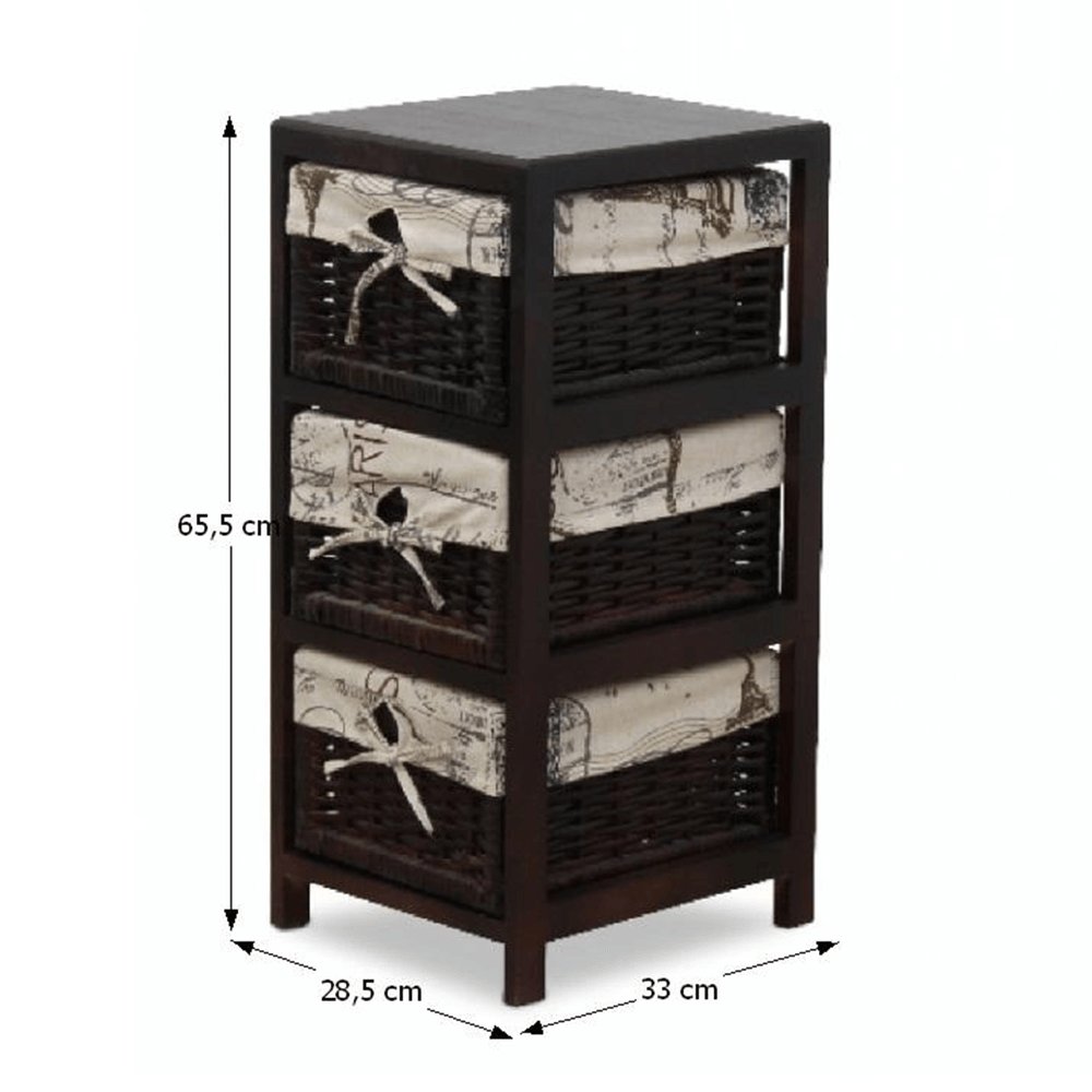 Komoda s 3 prútenými košíkmi v pevnom drevenom ráme,