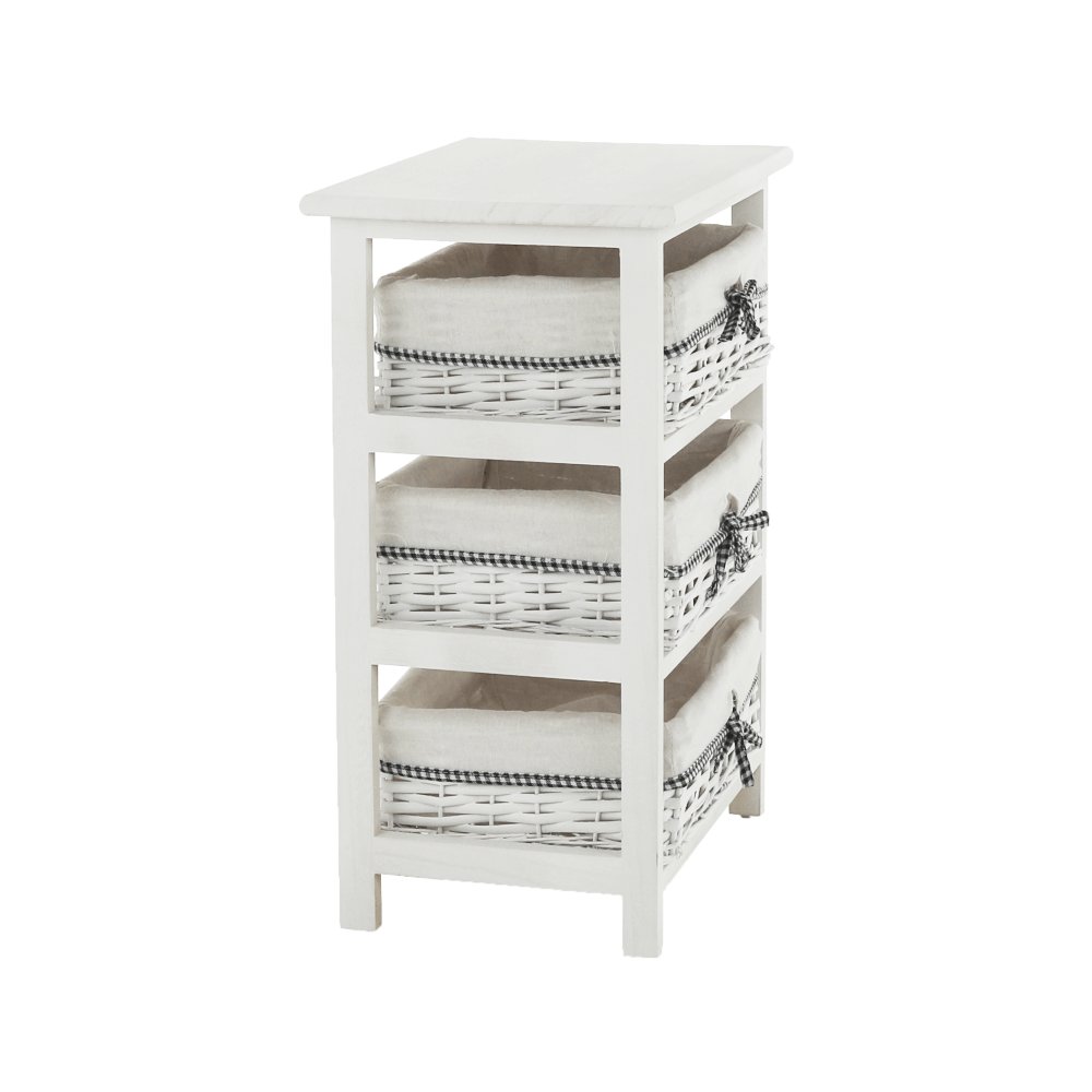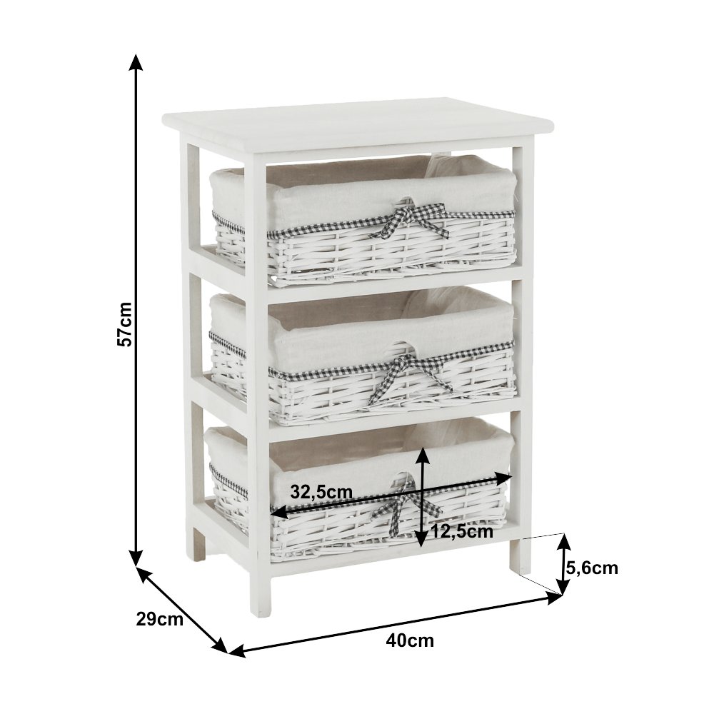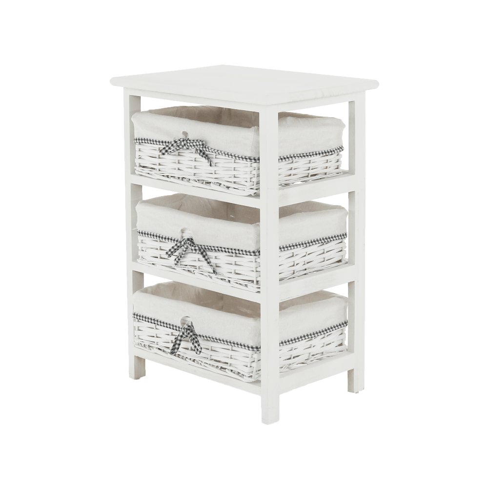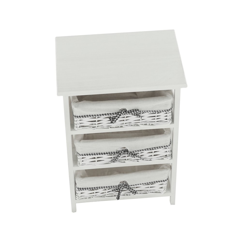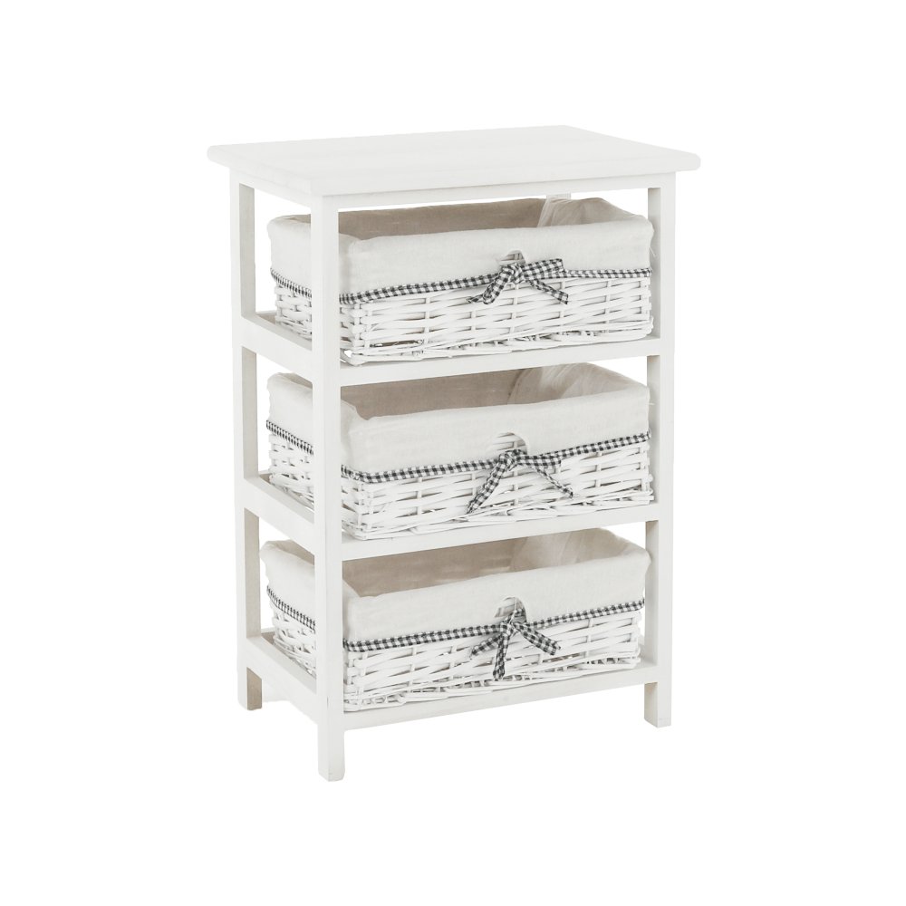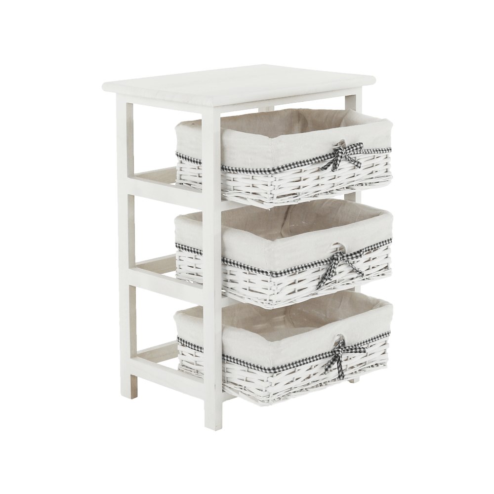 Komoda s pevným rámom a 3 prútenými košíkmi,