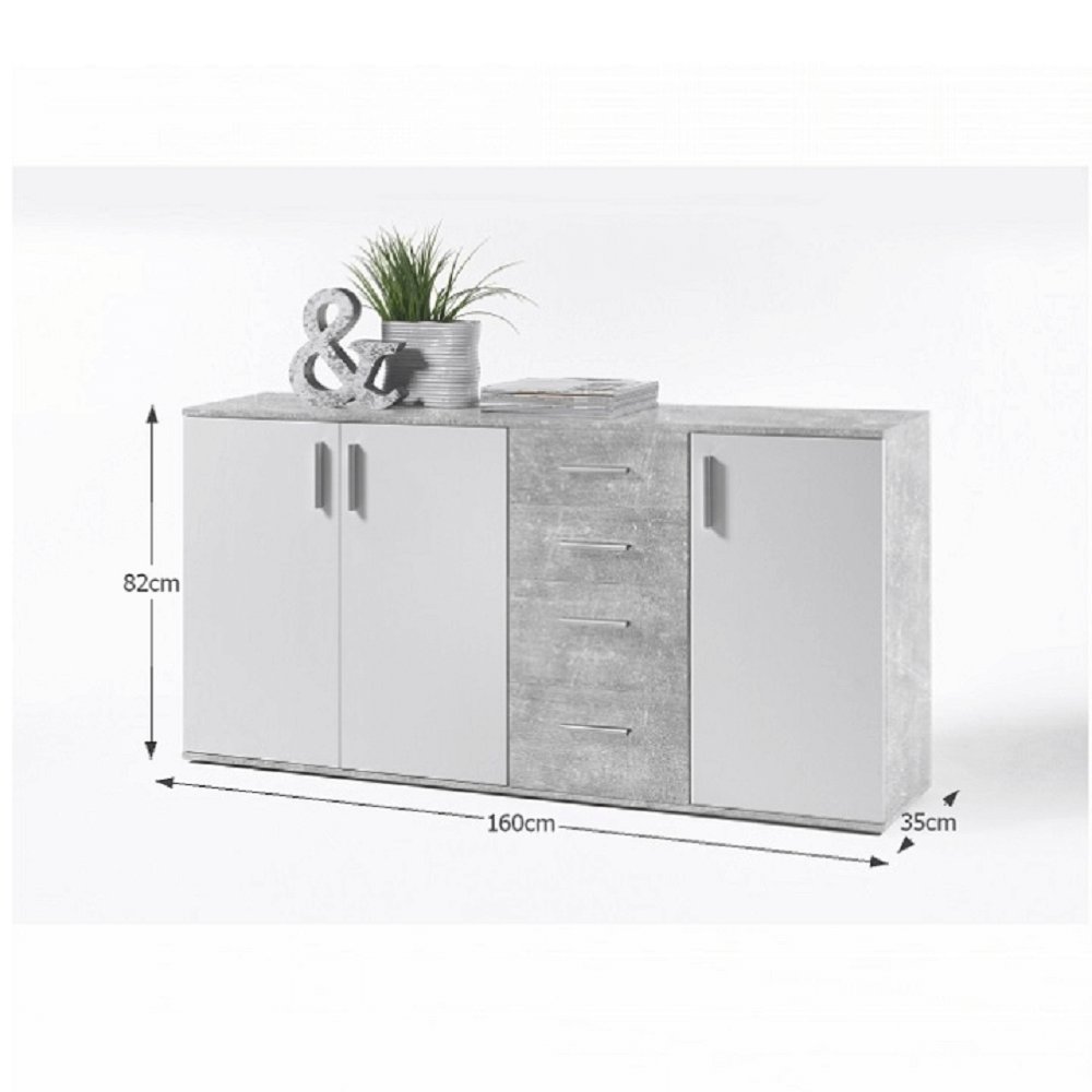 KONDELA Komoda, biela/betón, POPPY 3