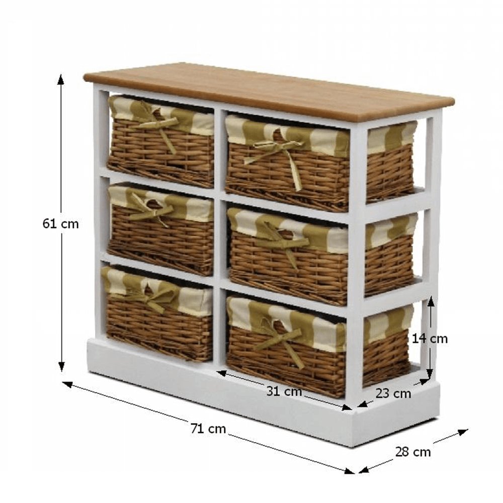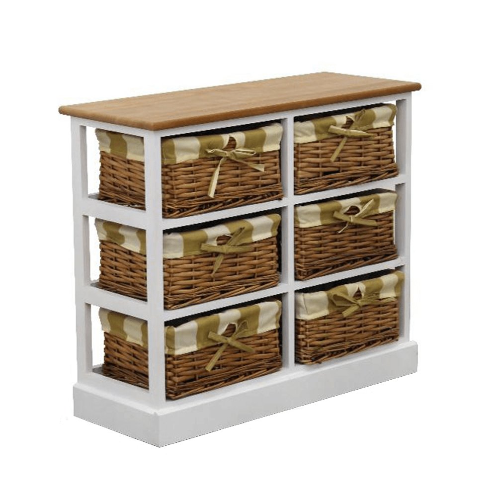 Komoda GINGER 1 so 6 prútenými košíkmi v kombinácii bielej a medovej farby.