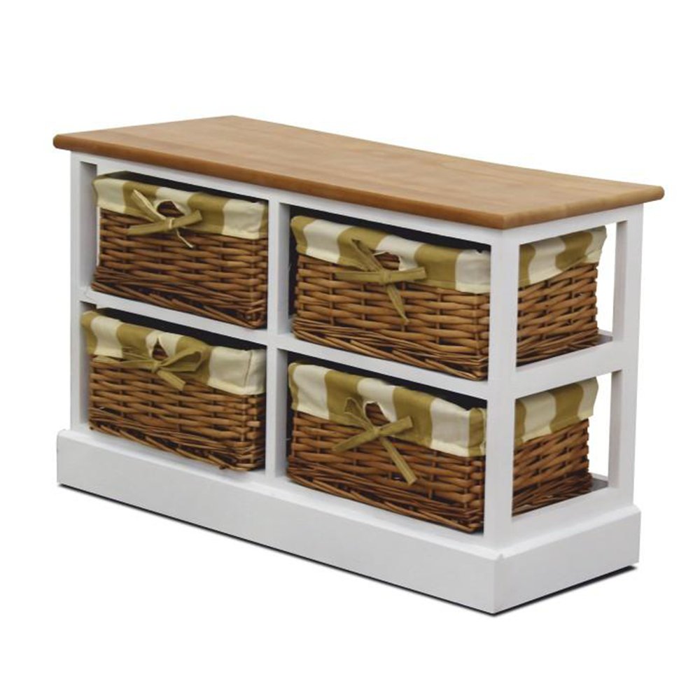 Komoda GINGER 4 so 4 prútenými košíkmi v kombinácii bielej a medovej farby,