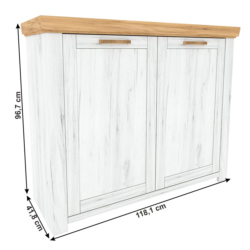 KONDELA Komoda J, dub craft zlatý/dub craft biely, SUDBURY