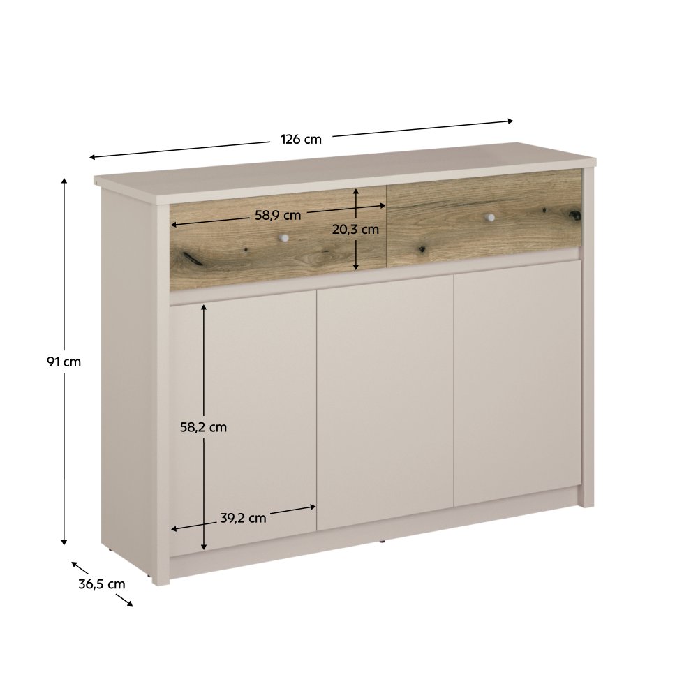 KONDELA Komoda, kašmír/dub evoke, KAROS 3D2S