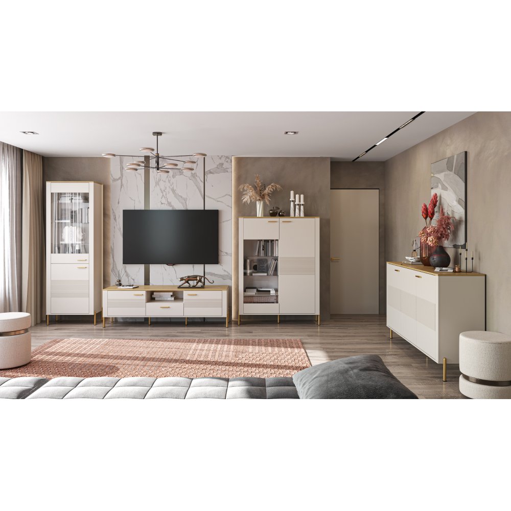 KONDELA Komoda, kašmír/dub kamenný, RUNOL 3D
