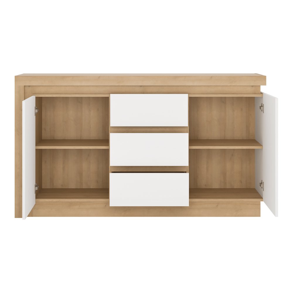 Komoda LYOK01 zo sektorovej zostavy LEONARDO v prevedení dub riviera/biela s vysokým leskom.