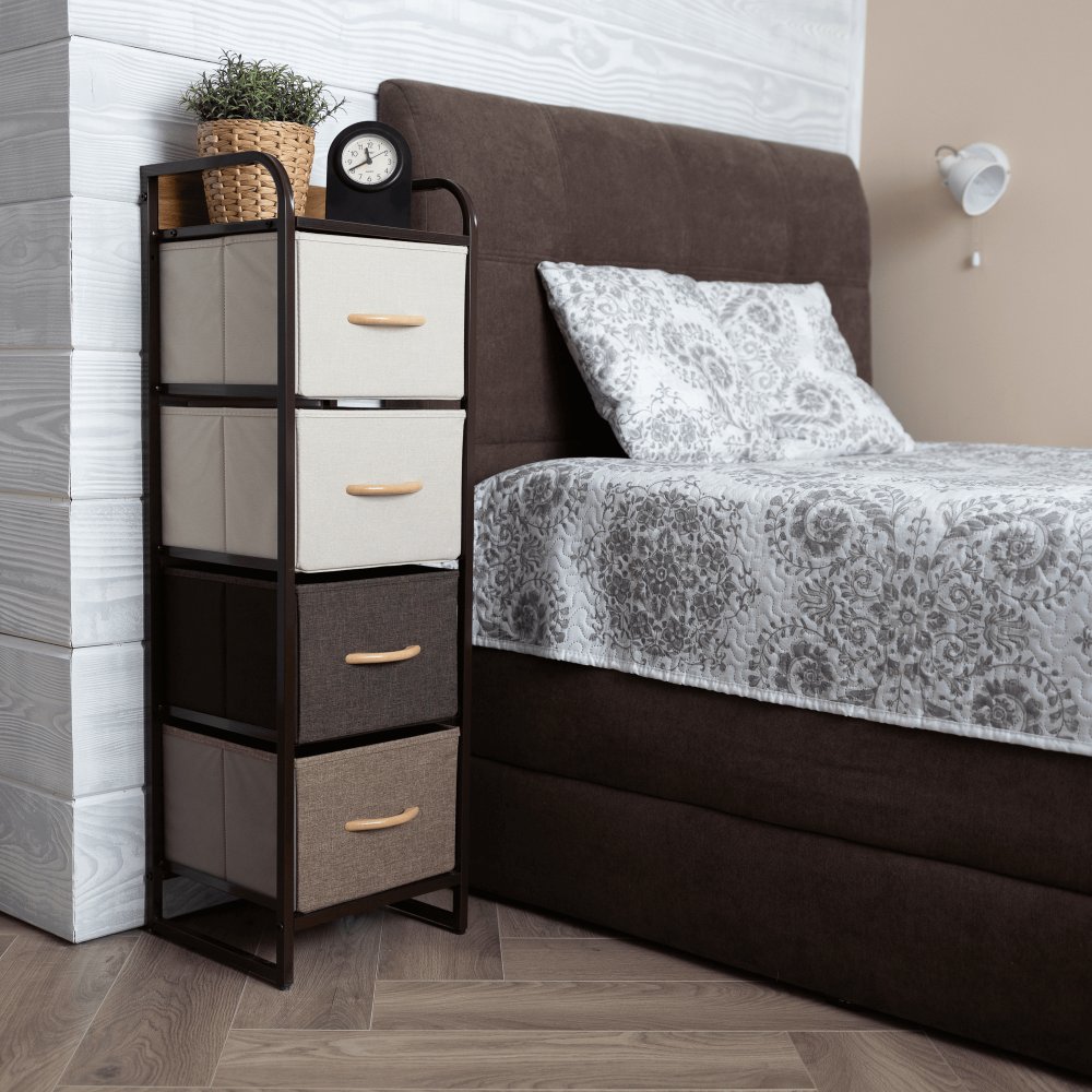 KONDELA Komoda s látkovými šuplíkmi, béžová/hnedá, HAZEL TYP 1