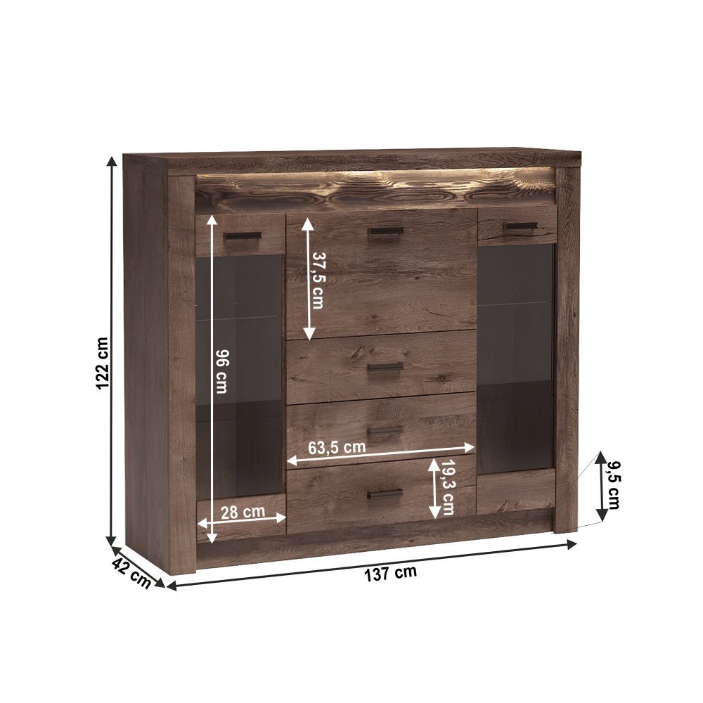 KONDELA Komoda s vitrínami, jaseň tmavý, INFINITY 08