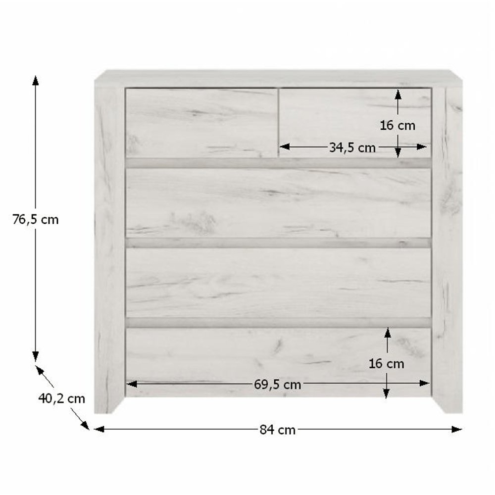 Komoda TYP 43 zo sektorovej zostavy ANGEL s piatimi šuplíkmi