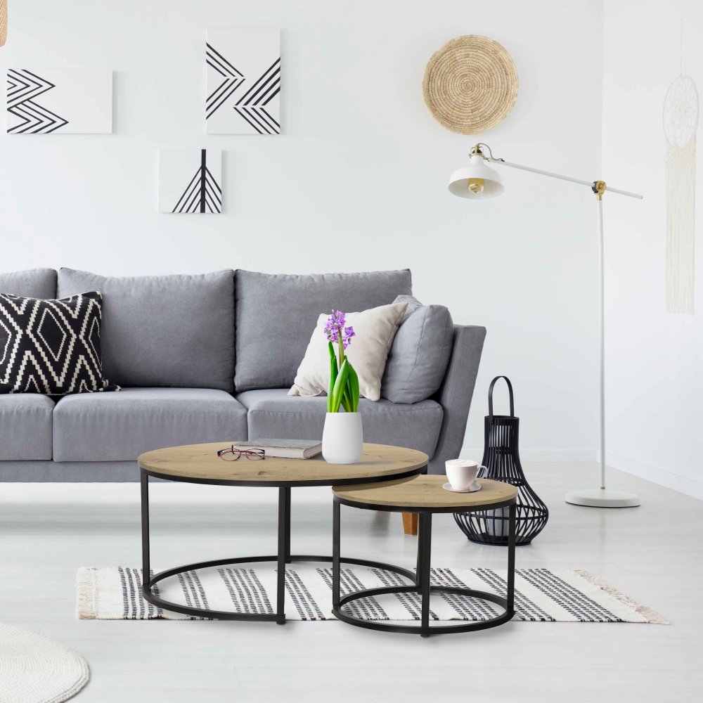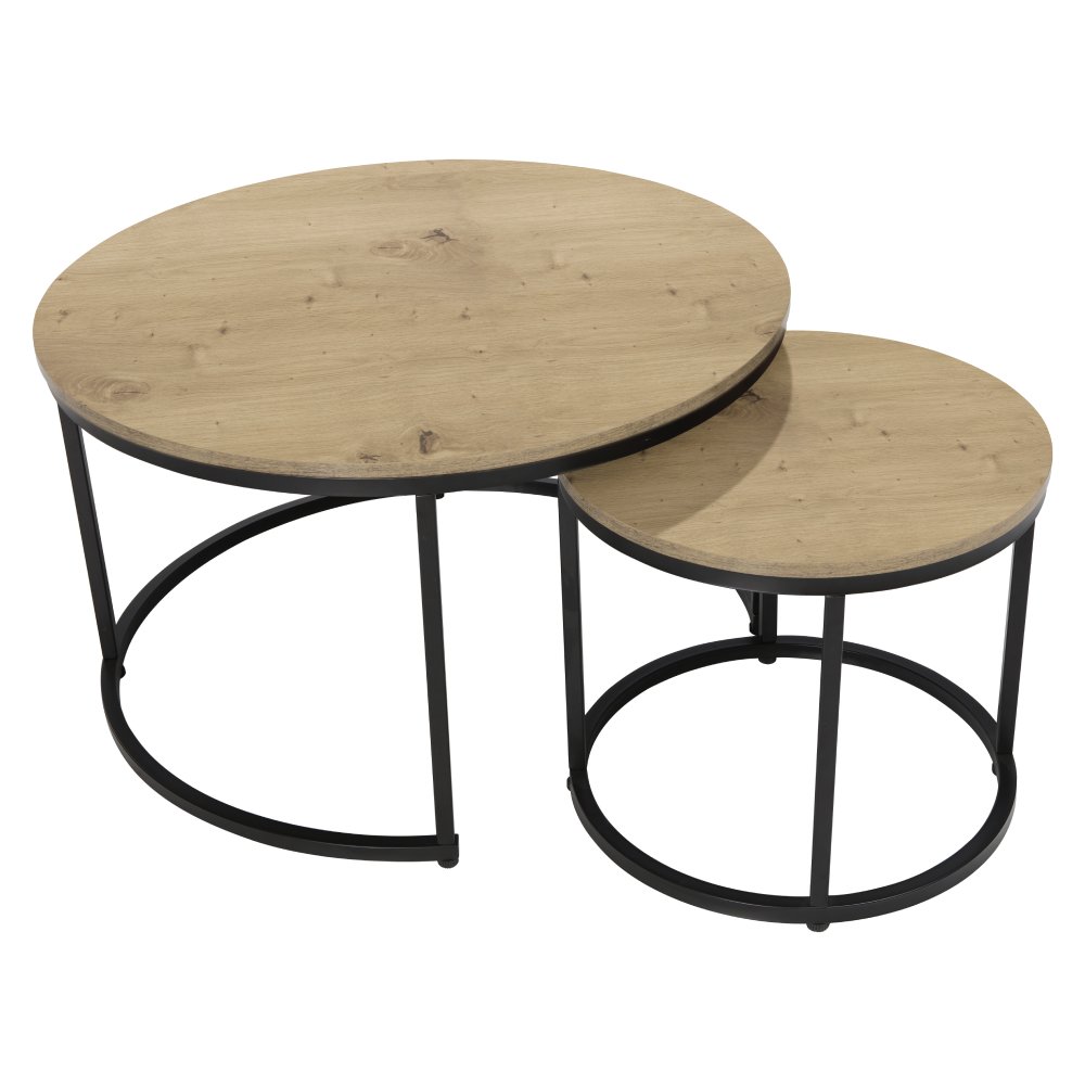 KONDELA Konferenčné stolíky, set 2 ks, dub/čierna, CIRKO