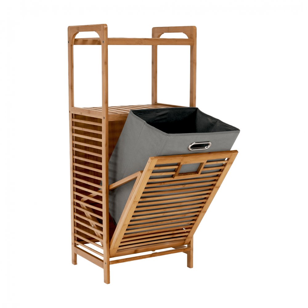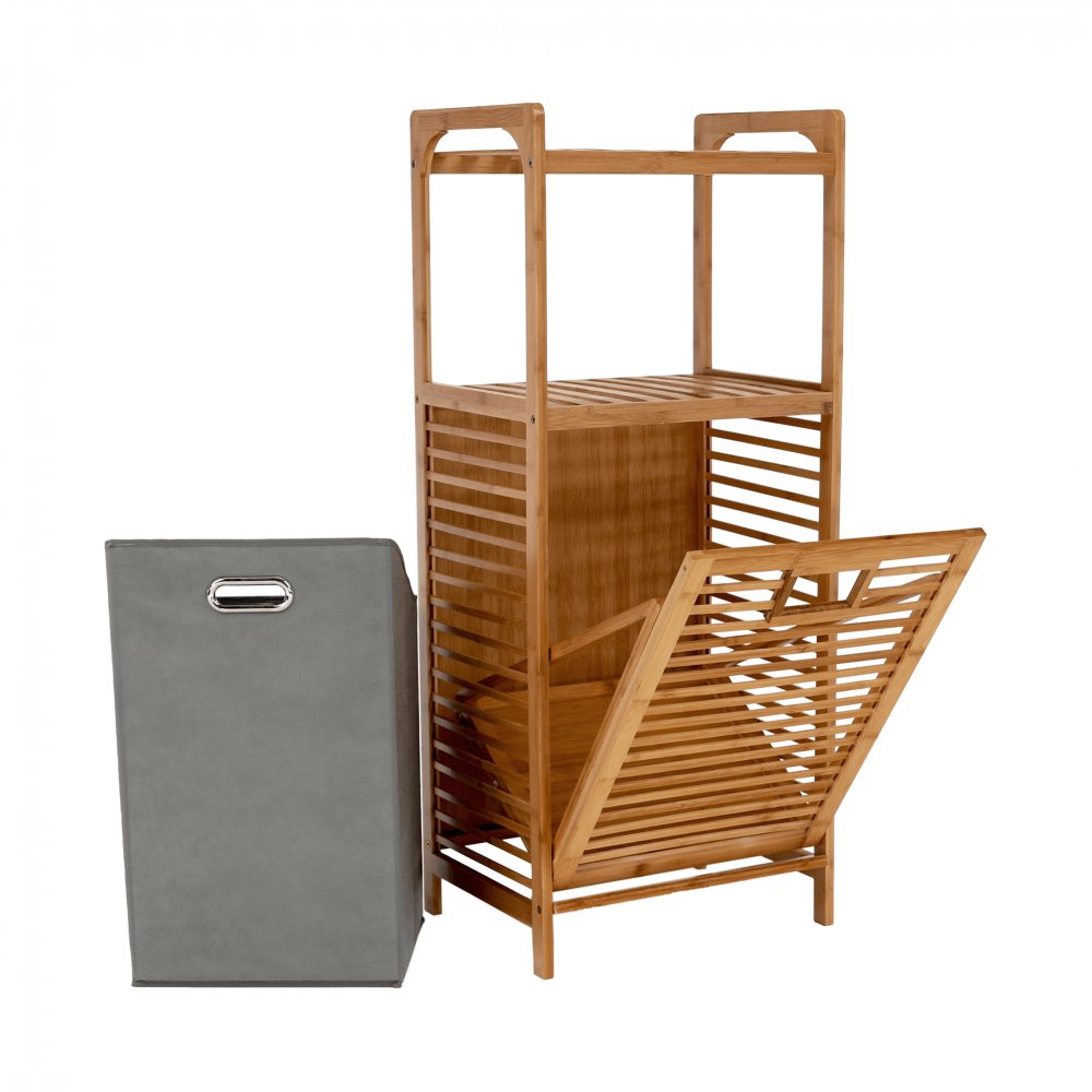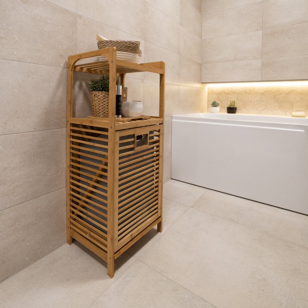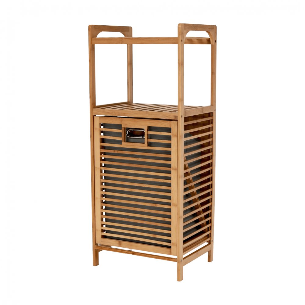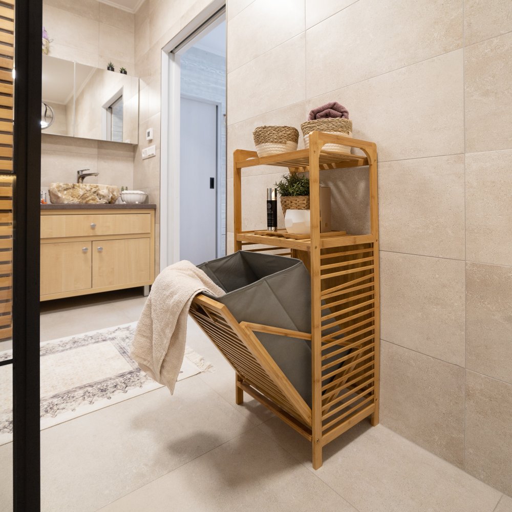 KONDELA Kôš na bielizeň, prírodný bambus/sivá, KERI NEW