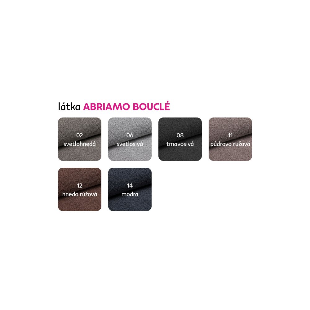 Možnosť objednania v 6 farebných prevedeniach látky Abriamo Bouclé v cene 219 Eur. Pri individuálnej objednávke je potrebné zaplatiť 20% zálohu z danej sumy. Po uhradení zálohy bude Vaša požiadavka zadaná do výroby. Doba dodania 6-8 týždňov.