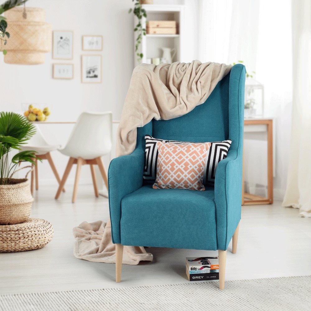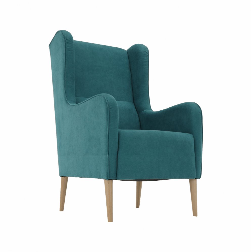 KONDELA Kreslo ušiak, tyrkysová/buk, BREDLY