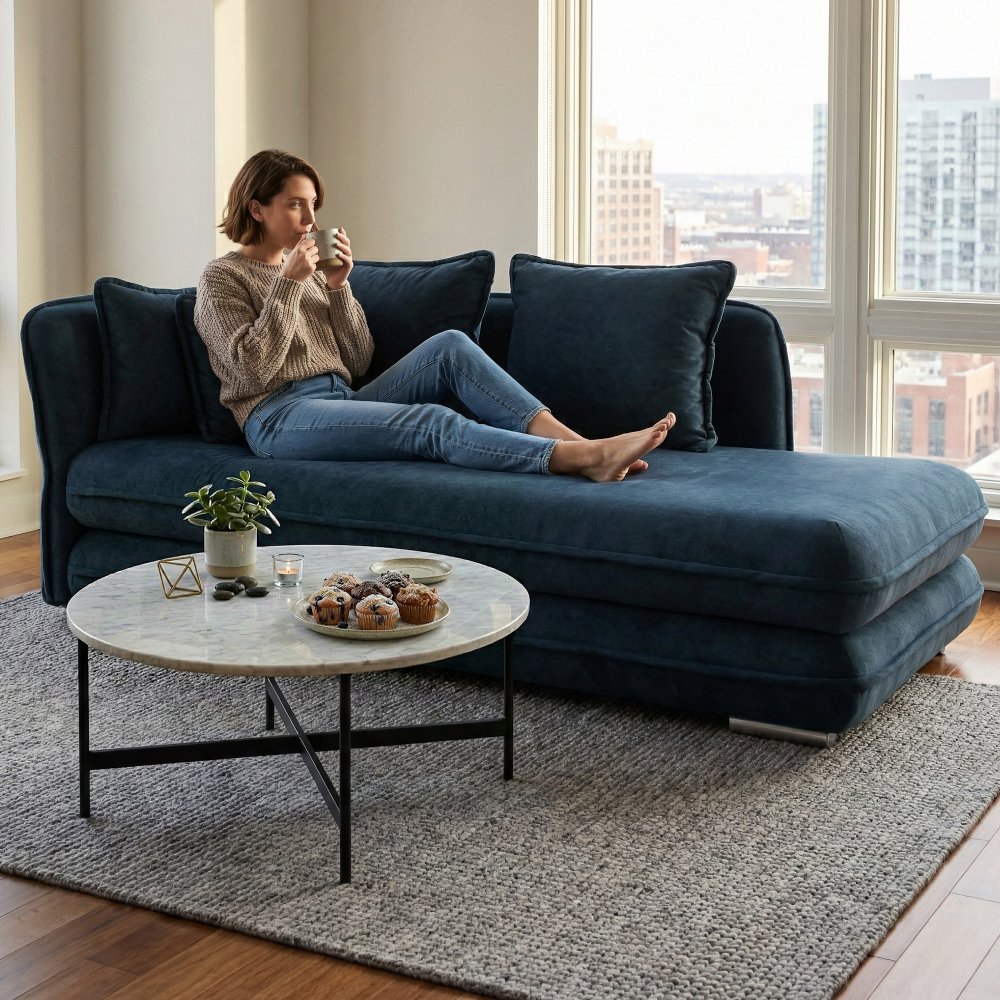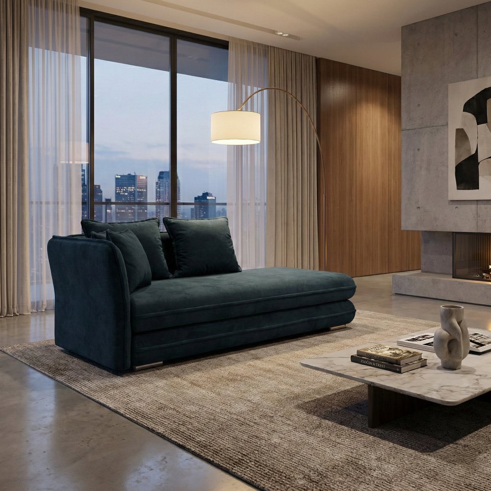 KONDELA Leňoška s úložným priestorom, modrá, ľavá, LAMBA