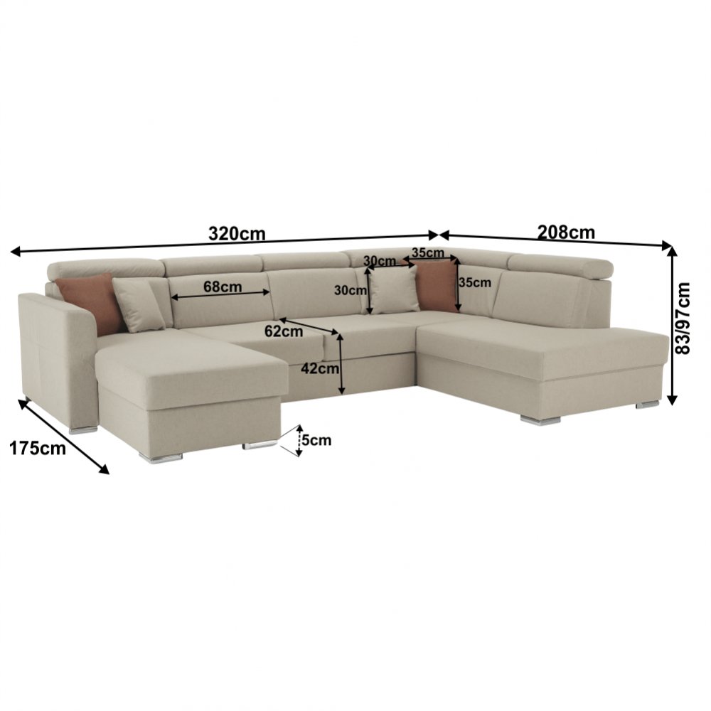 Rozmery: (ŠxHxV): 320x208-175x83-97 cm, plocha na spanie (ŠxD): 130x260cm