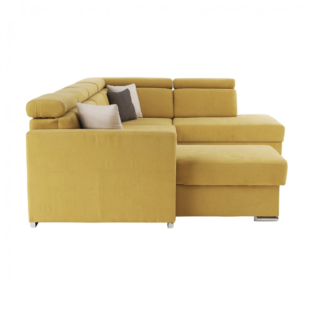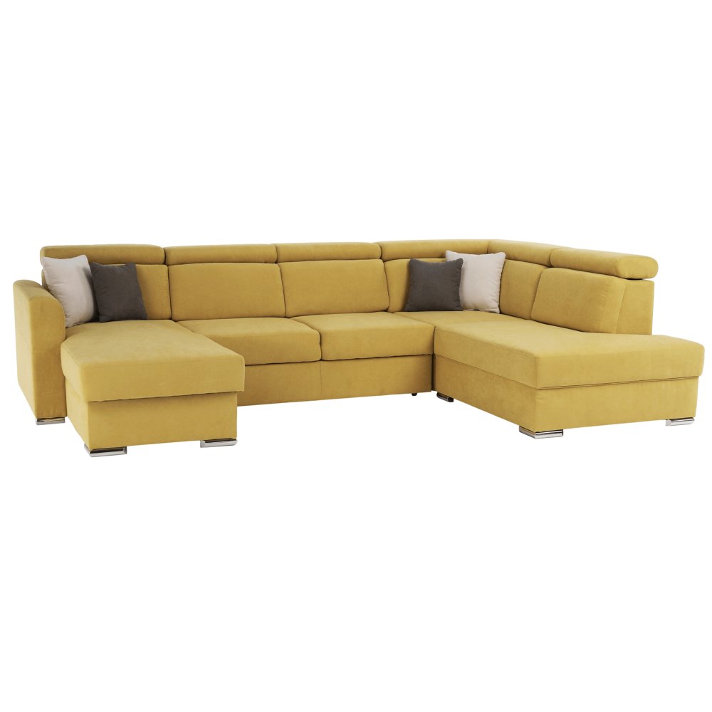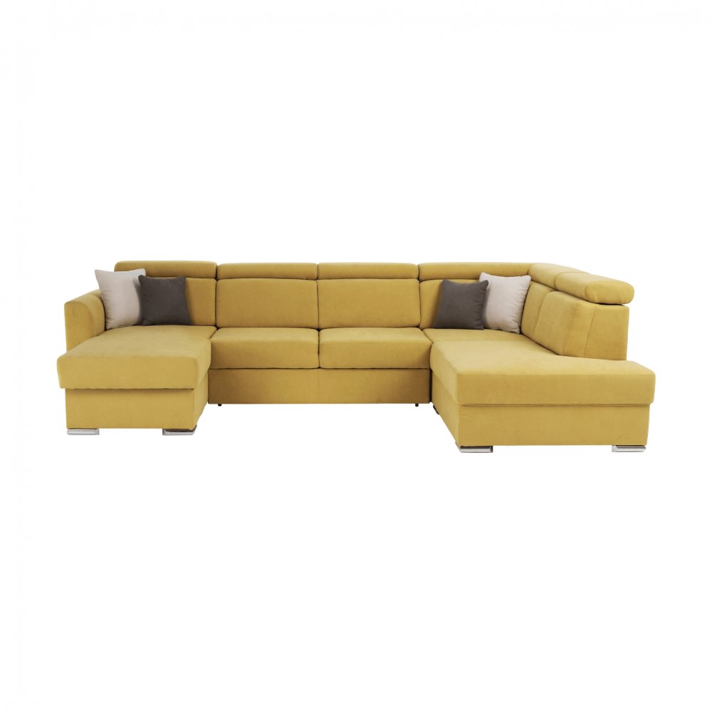 KONDELA Luxusná sedacia súprava, žltá/hnedé vankúšiky, pravá, MARIETA U