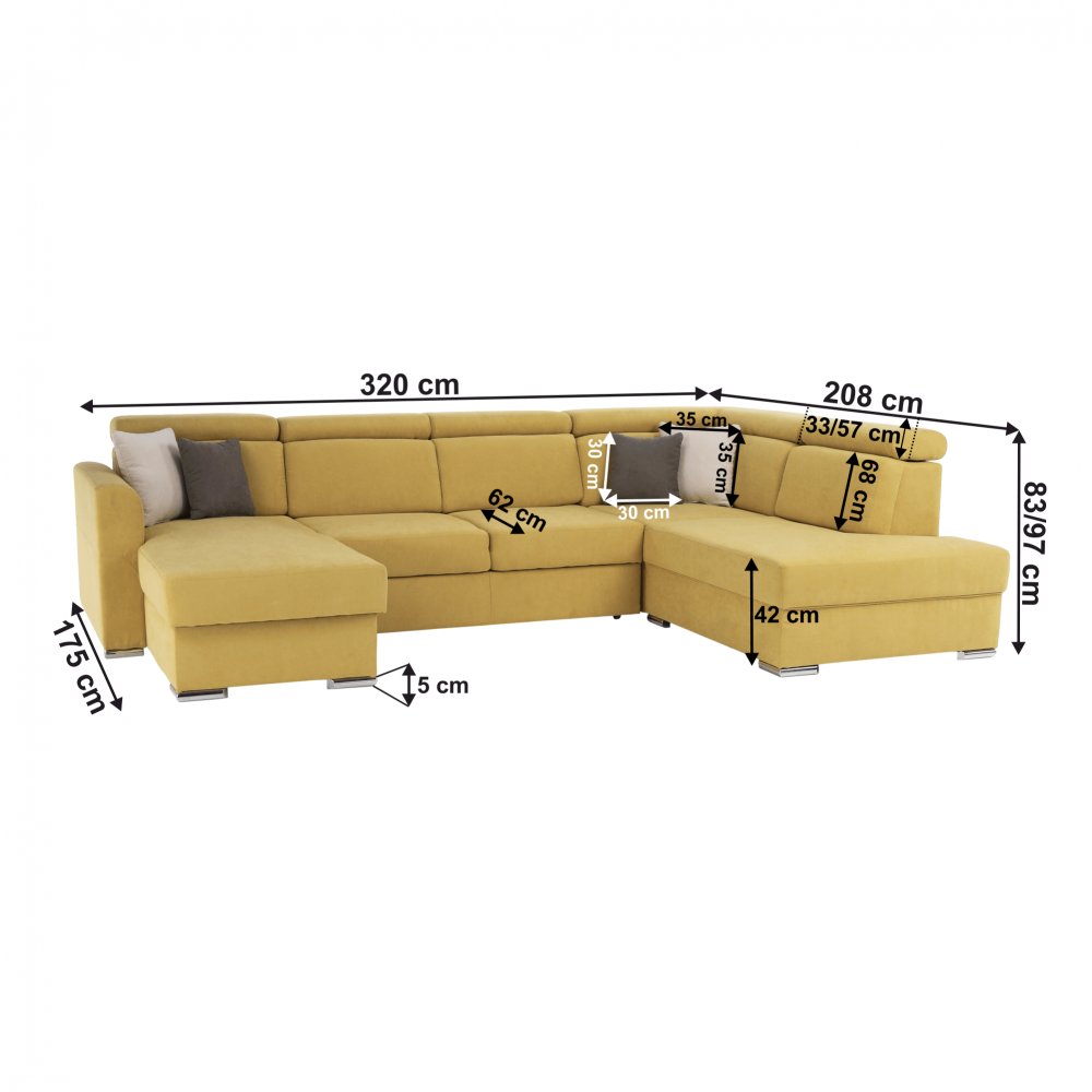 Rozmery: (ŠxHxV): 320x208-175x83-97 cm, plocha na spanie (ŠxD): 130x260cm