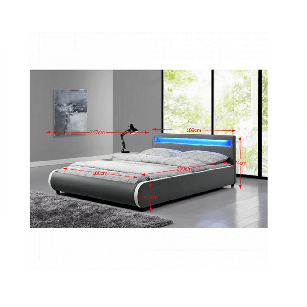 KONDELA Manželská posteľ s, RGB LED osvetlením, sivá, 180x200, DULCEA