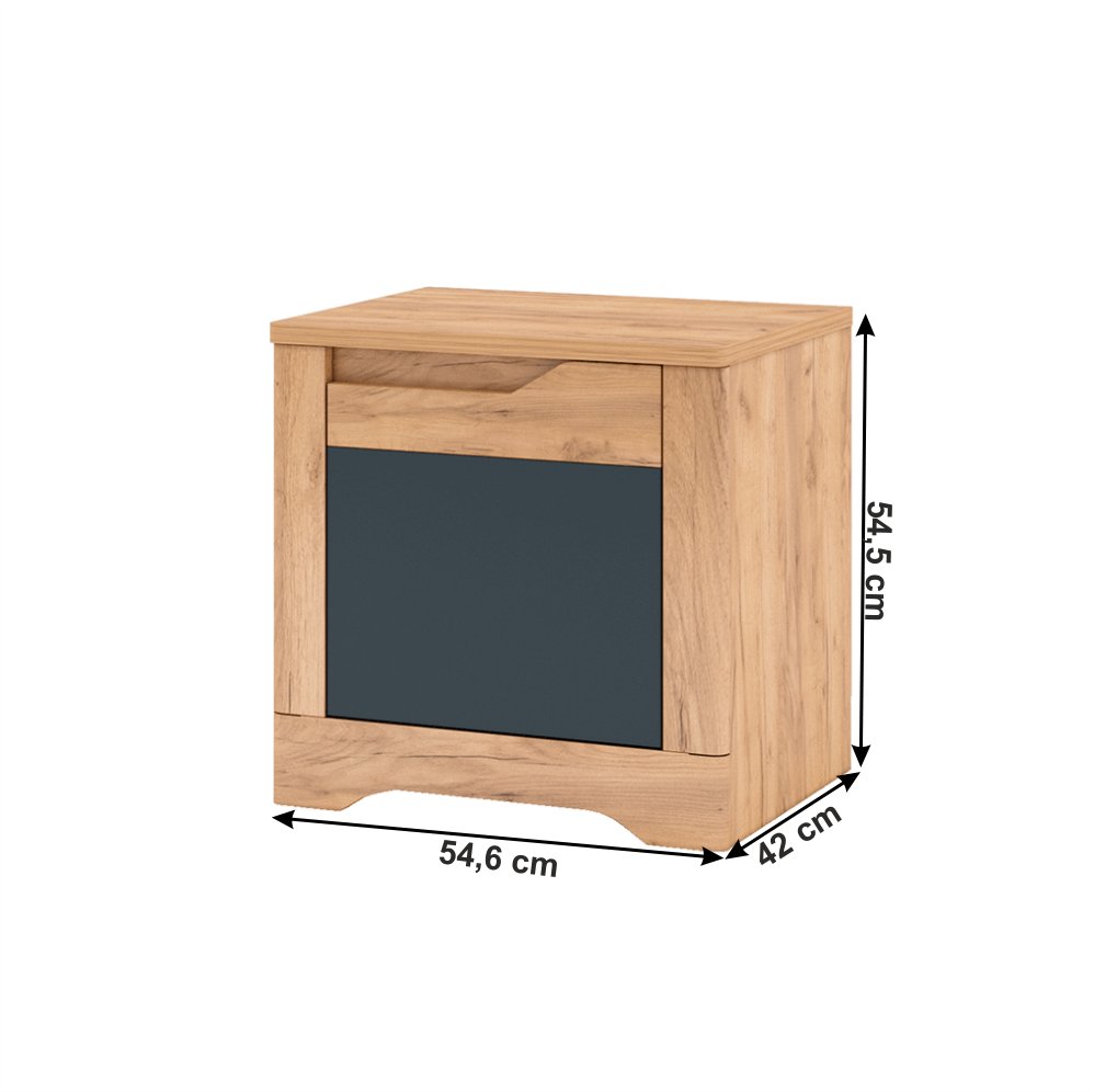 KONDELA Nočný stolík, dub craft zlatý/grafit sivá, pravá, FIDEL X2